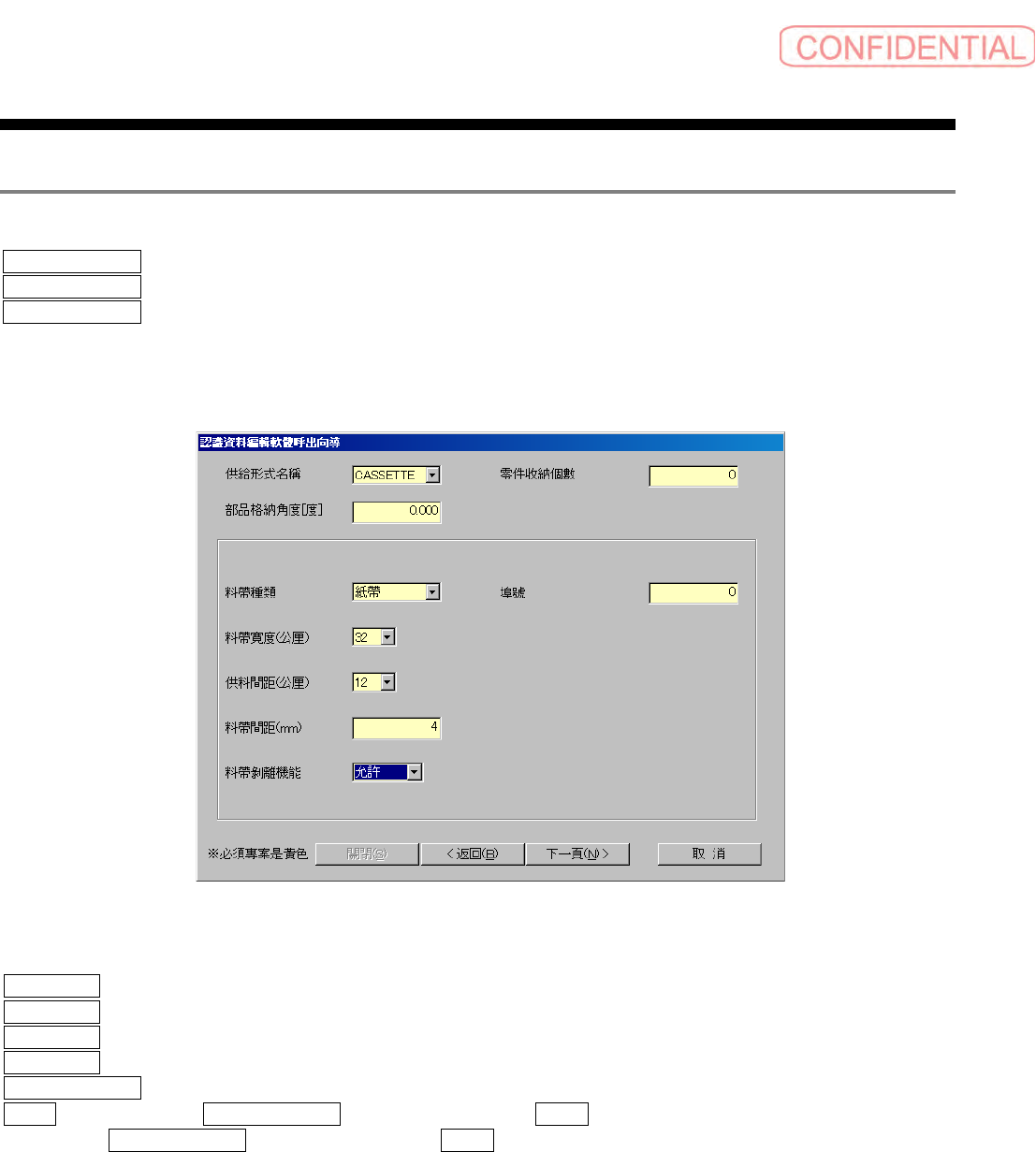 埠號 ( 端口号 ):有 料帶剝離機能 ( 料带剥离功能 ) - 允許 ( 允许 ) 的时候使用简易供料器界面时