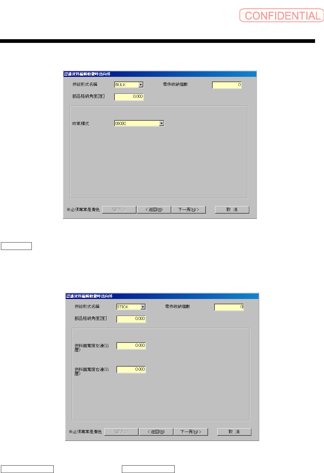 供料器寬度右邊 ( 供料器宽度右边 )、 供料器寬度左邊 ( 供料器宽度左边 ):管装供料器的宽度的右