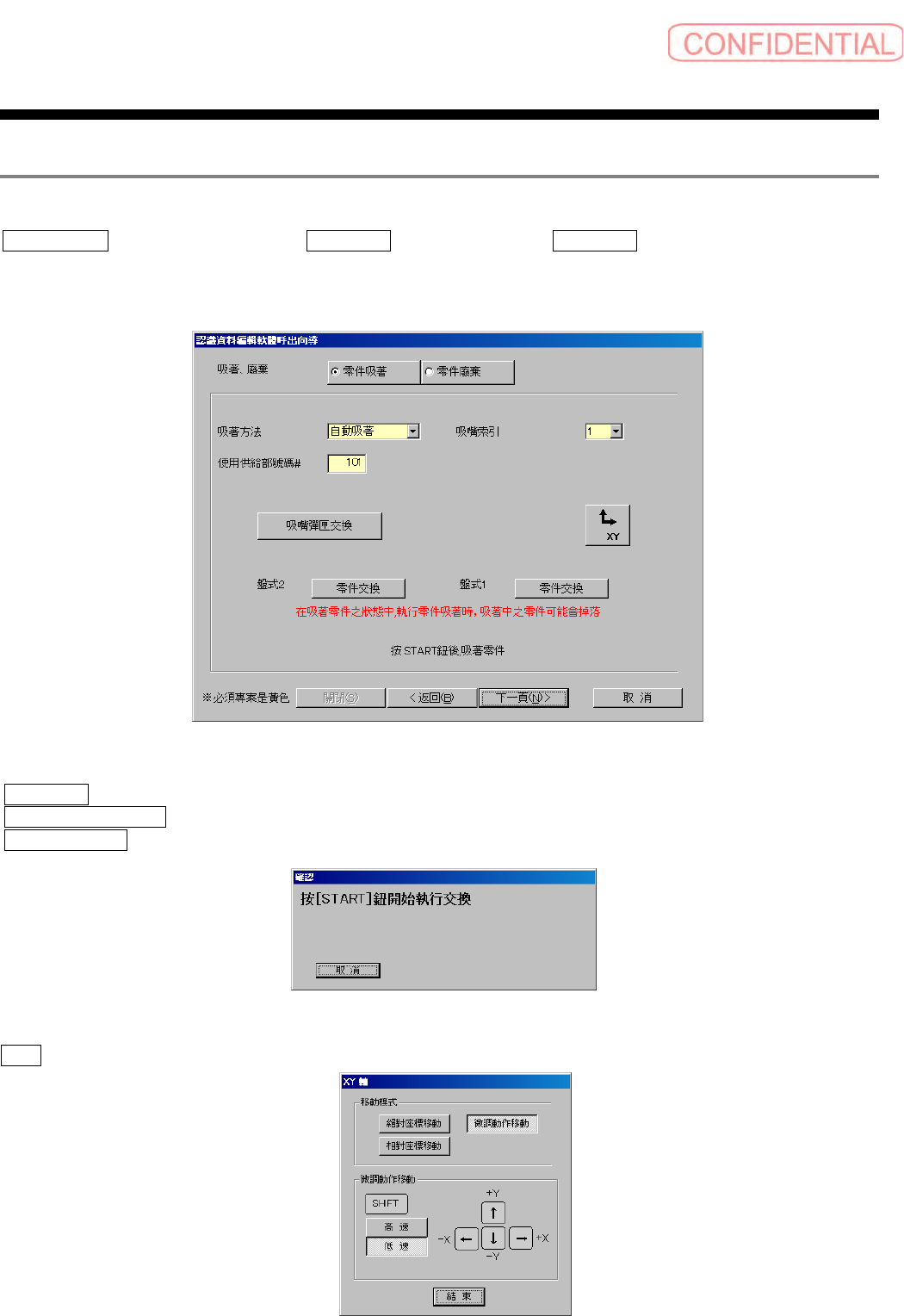 吸嘴彈匣交換 ( 吸嘴弹匣交换 ):通过点击这个按钮,开始吸嘴弹匣的交换 ( 仅 SI-F209)。