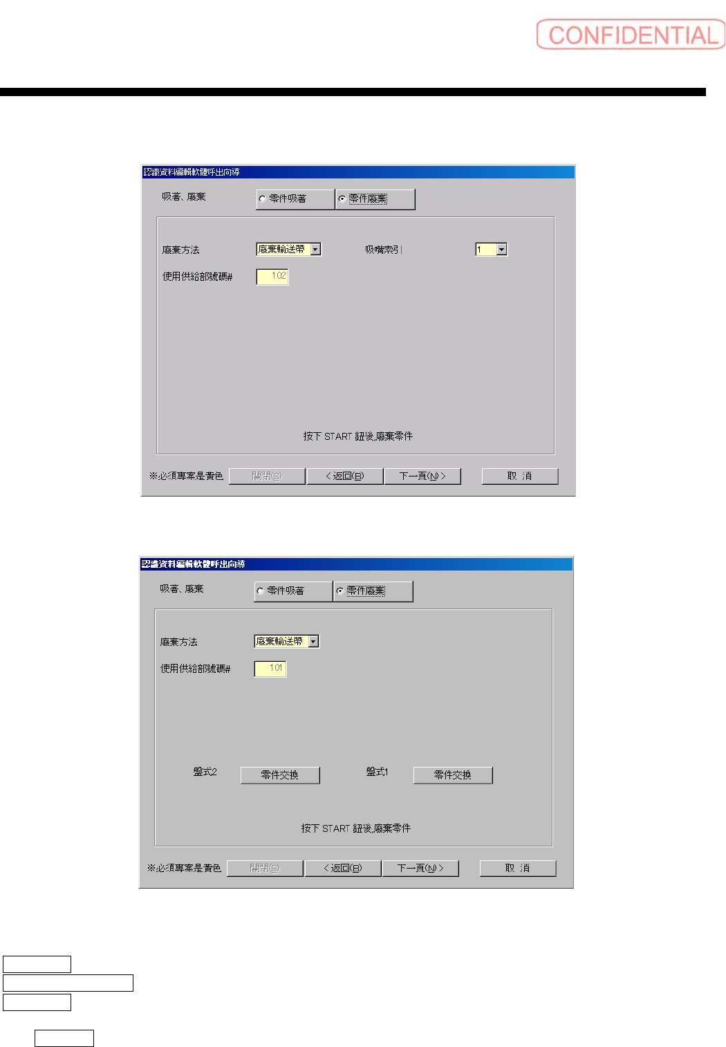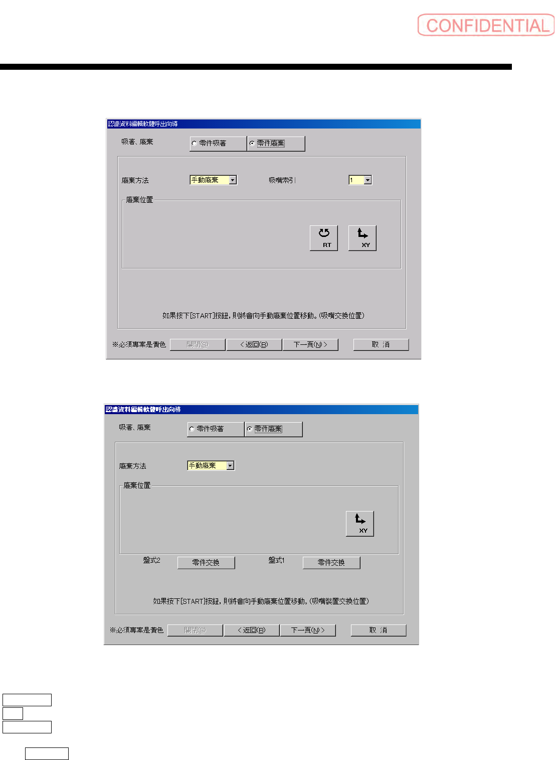 零件认识资料制作篇 零件认识资料制作篇 零件认识资料制作篇 零件认识资料制作篇 第 1 章 操作 1-22 SI-F130/SI-F 209 2.6.6 零件废弃·手动废弃的情况 零件废弃·手动废弃的情况 零件废弃·手动废弃的情况 零件废弃·手动废弃的情况 图 2.6.6- 1 零件廢棄 ‧手動廢棄 ( 零件废弃· 手动废弃 )(SI-F 130) 图 2.6.6 -2 零件廢棄‧手 動廢棄 ( 零件废弃· 手动废弃 ) (SI-F20…