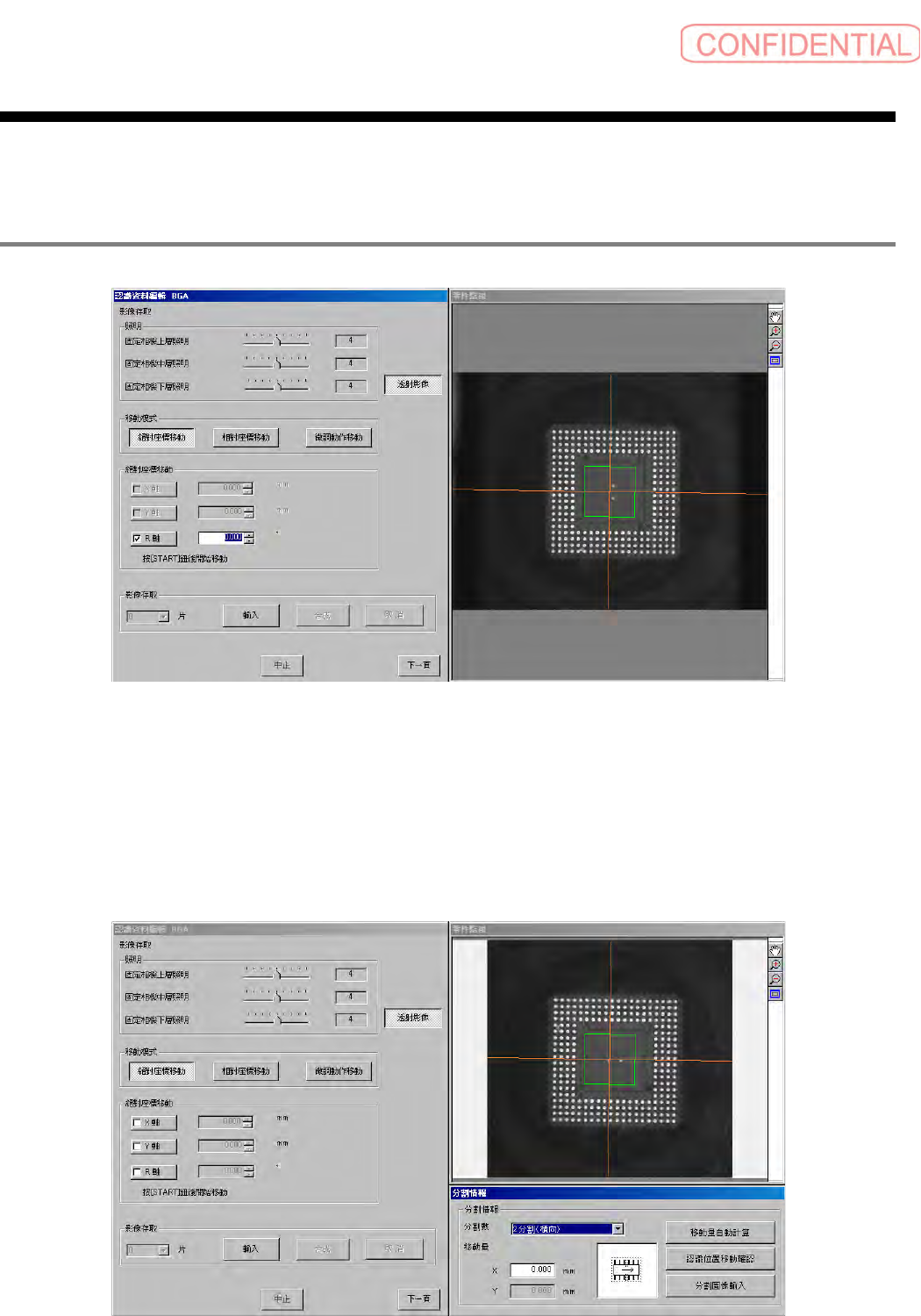 息”画面,算出、设定分割认识用的移动量。起动时,用透射影像显示状态起动。
