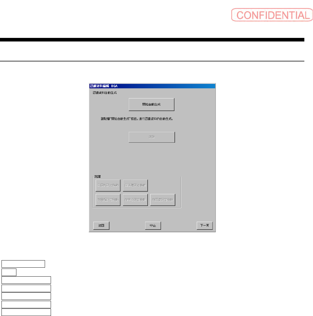 零件认识资料制作篇 零件认识资料制作篇 零件认识资料制作篇 零件认识资料制作篇 第 1 章 操作 SI-F130/SI-F 209 1-27 3.2 认识资料自 动生成画面 认识资料自 动生成画面 认识资料自 动生成画面 认识资料自 动生成画面 芯片零件、异型零件 时不显示。 图 3.2 認識資料自動 生成 ( 认识资料自 动生成 ) 画面 開始自動生成 ( 开始自动生成 ) :从输 入的影像开始,进行零件资料的自动 生成。 清除 ( …