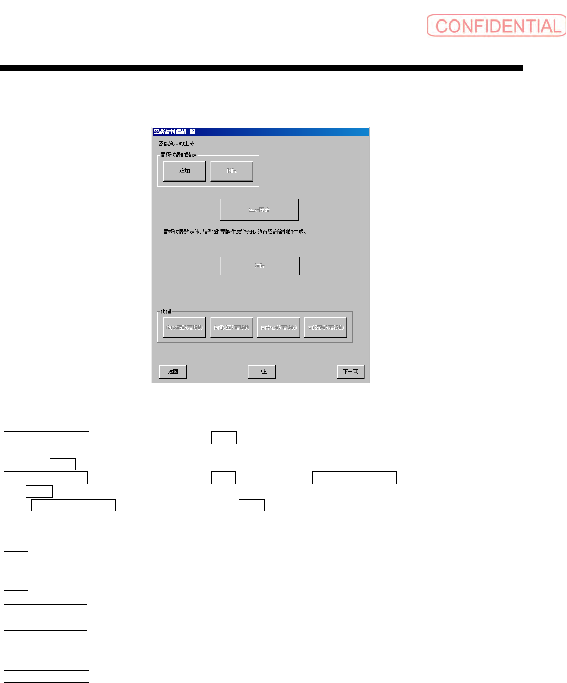 清除 ( 清除 ) :消去用半自动生成生成的资料。但是,已追加的电极位置无法消去。通过半自动生