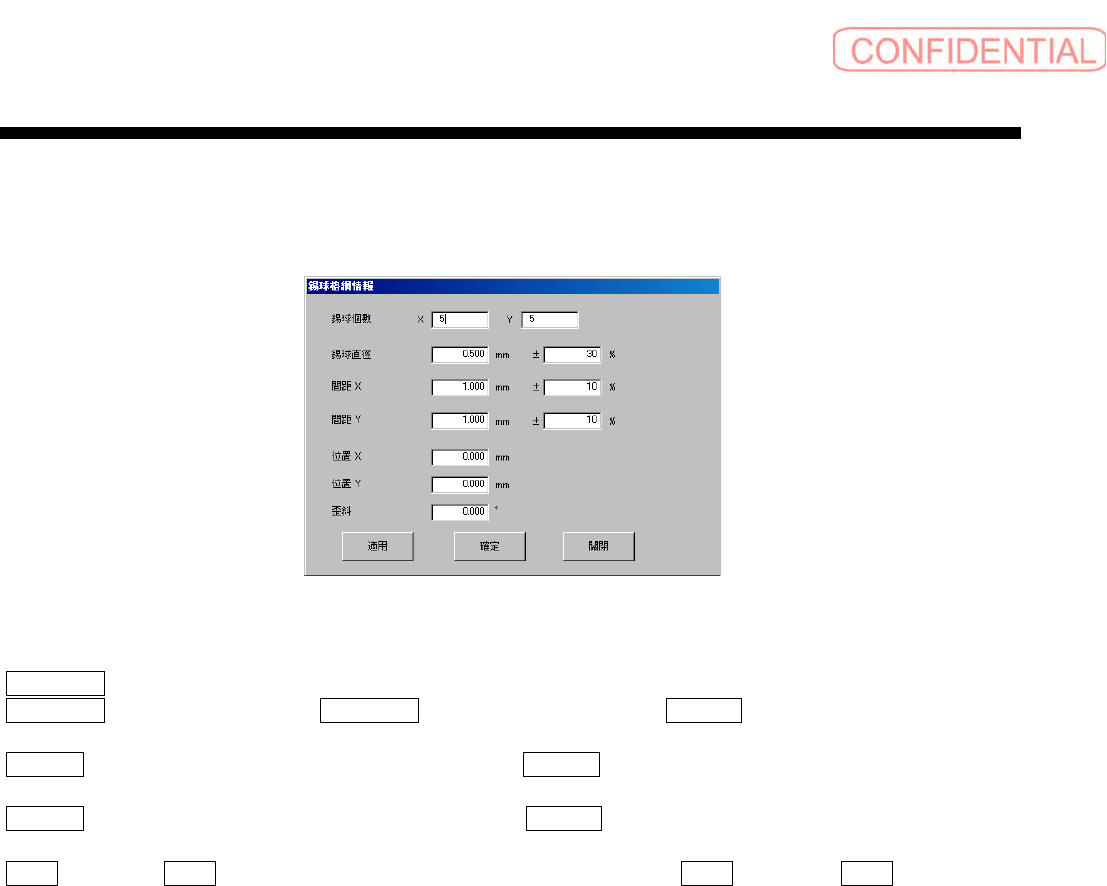 錫球格網 ( 锡球格网 ) - 明細 ( 明细 ) :显示设定画面,设定被选择的锡球格网的信息。