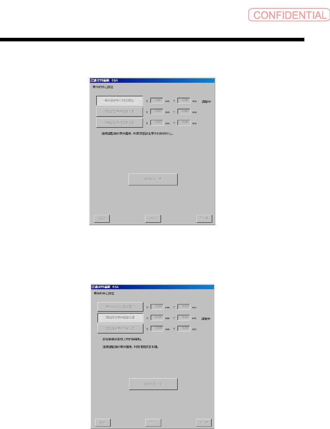 零件认识资料制作篇 零件认识资料制作篇 零件认识资料制作篇 零件认识资料制作篇 第 1 章 操作 SI-F130/SI-F 209 1-39 3.5.3 开始设定零 件吸着位置画面 开始设定零件吸着位置画面 开始设定零件吸着位置画面 开始设定零件吸着位置画面 图 3.5.3 開始設定零件 吸著位置 ( 开始设定零件 吸着位置 ) 画面
