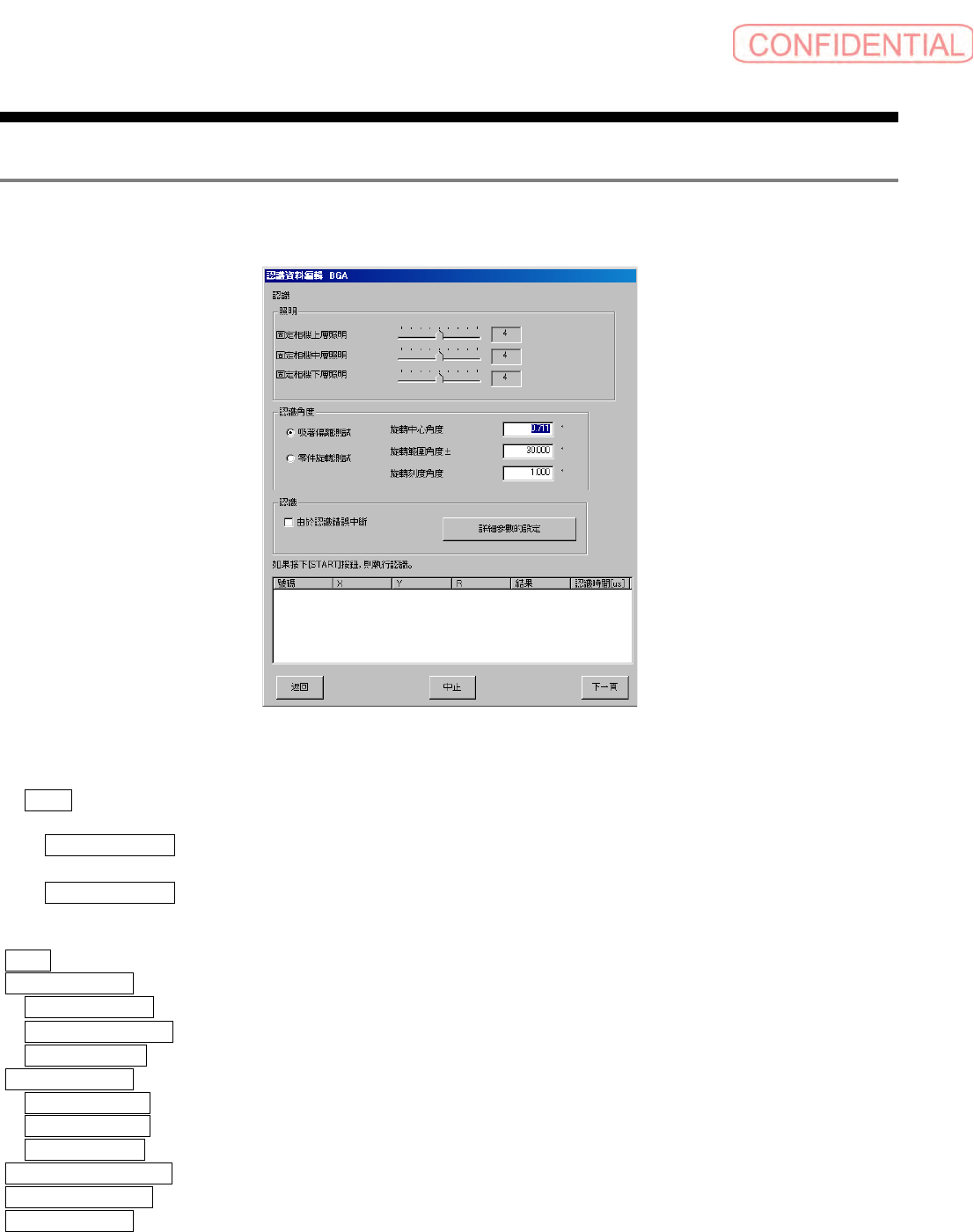 在 認識 ( 认识 ) 画面上,可以在吸着偏离测试和零件旋转测试 2 种模式下对制作的零件资料进行验