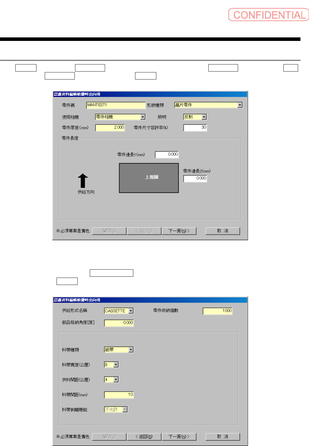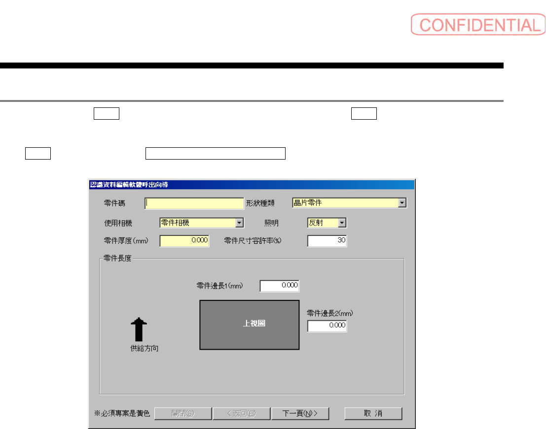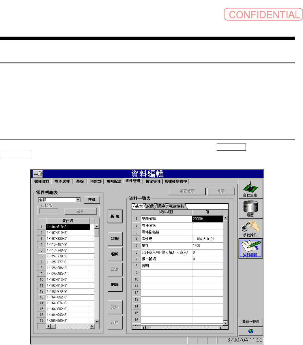 获取要登录 (制作零件认识数据)到零件管理表的电子零件,实机上显示 資料編輯 ( 资料编辑 ) -