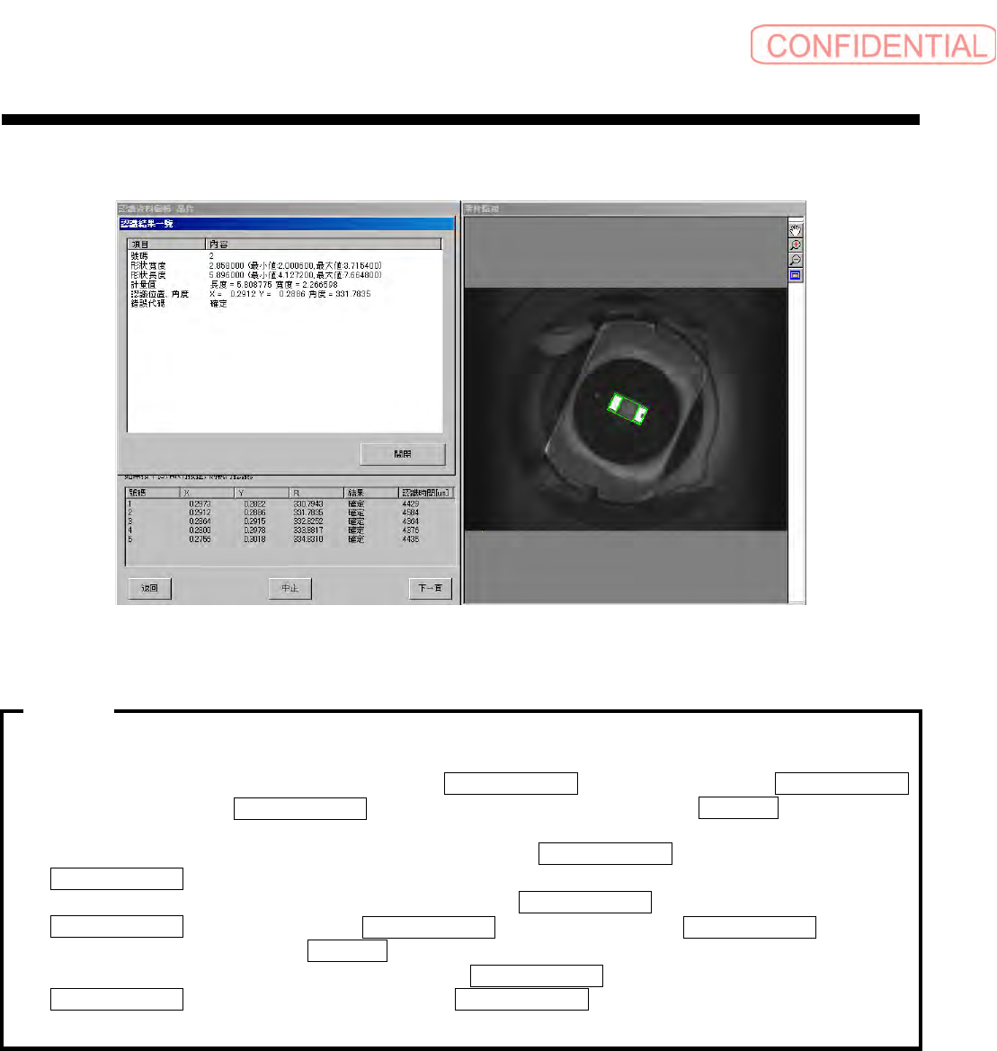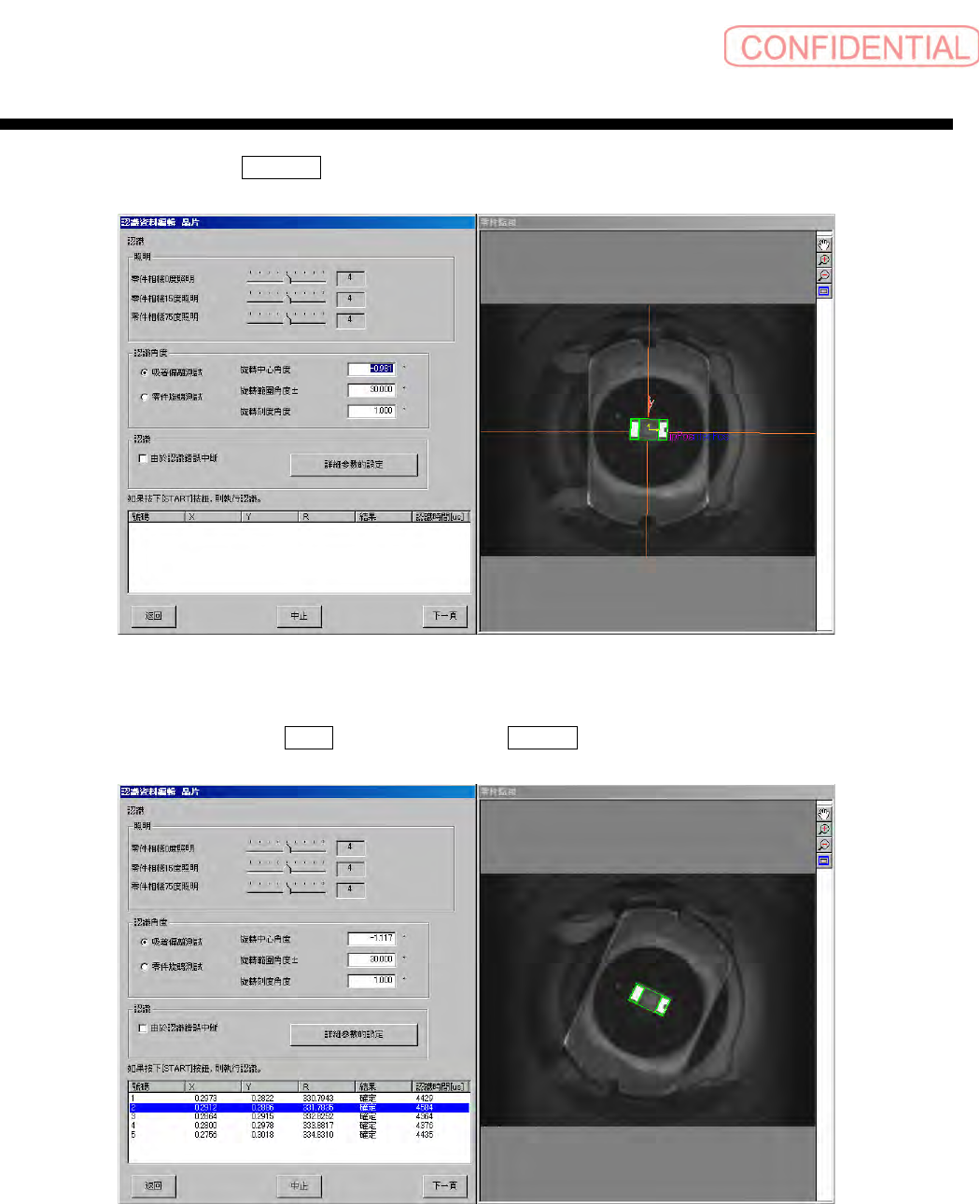 零件认识资料制作篇 第 2 章 顺序 SI-F130/SI-F 209 2-9 移动到认识设定画面 ,按 ST AR T 钮, 则执行认识。 图 1.3-12 認識 ( 认识 ) 设定 画面 认识被执行,认识结 果处显示 確認 ( 确认 ) 后,请按 STOP 钮, 停止认识处理。 图 1.3- 13 認識 ( 认识 ) 设定后