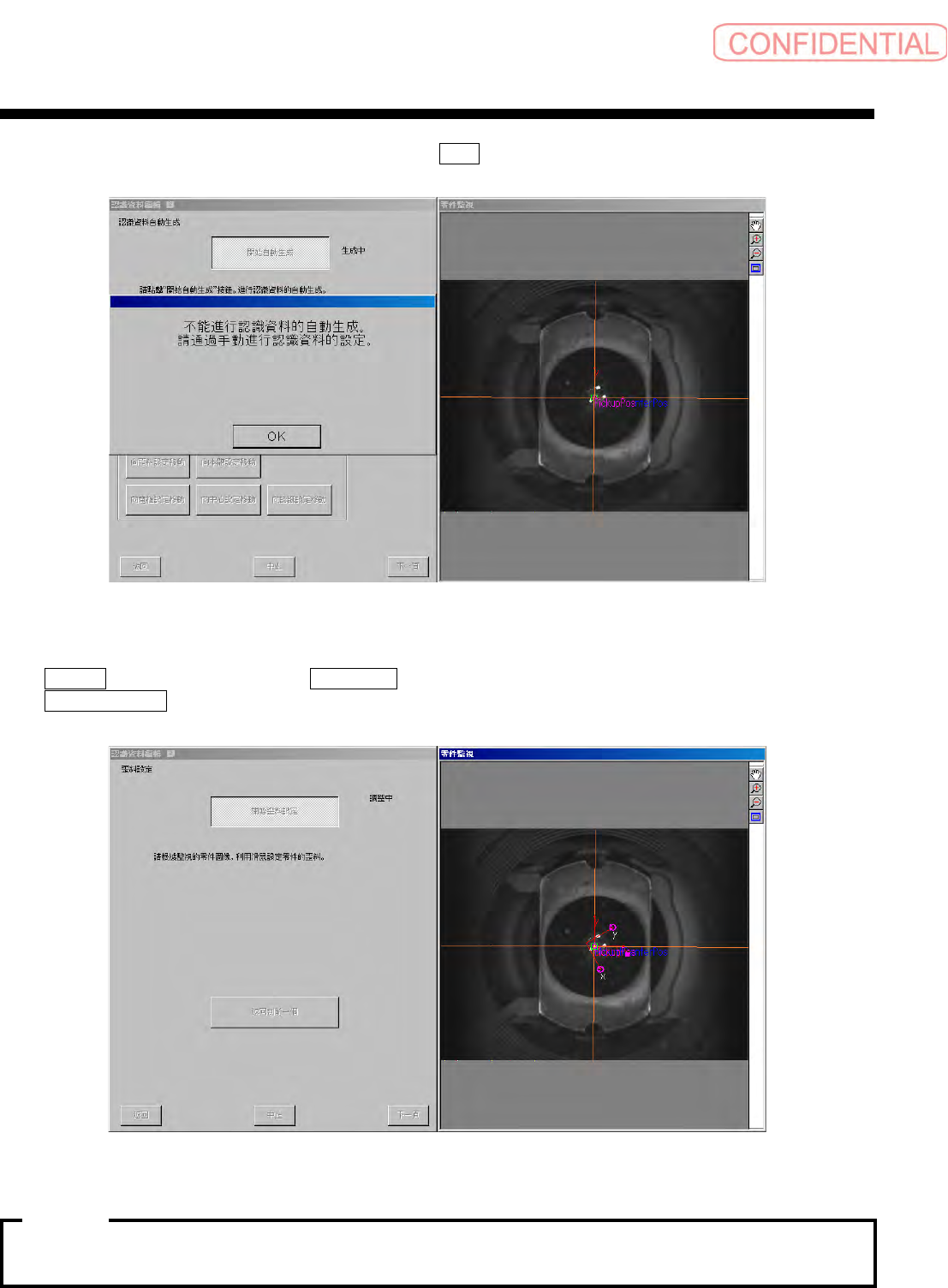 零件认识资料制作篇 零件认识资料制作篇 零件认识资料制作篇 零件认识资料制作篇 第 2 章 顺序 SI-F130/SI-F 209 2-25 点击 下一頁 ( 下一页 ) ,会出现 認識資料的生成 ( 认识资料的生成 ) 画面。 图 1.4.1 -3 認識資料的生 成 ( 认识资料的生 成 ) 画面 点击 認識資料的生成 ( 认识数据的生 成 ) 画面的 電極 位置的設定 ( 电极位置的 设定 ) - 追加 ( 追 加 ) 。 按 開始…