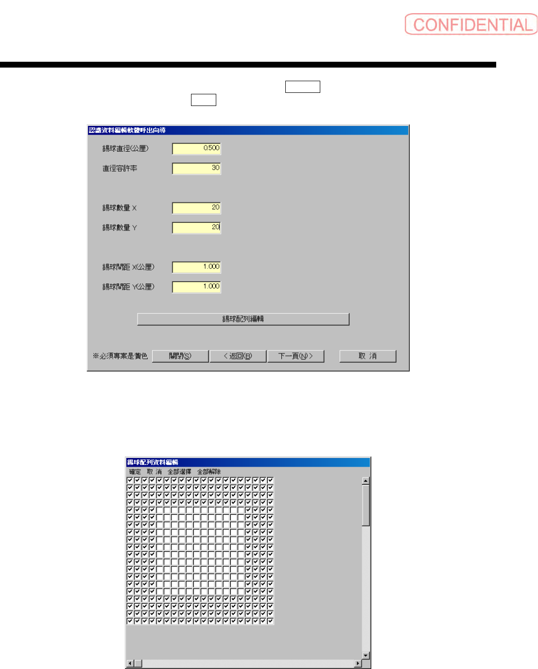 显示锡球信息设定画面,输入锡球数组等的各项目,点击 下一頁 ( 下一页 )。