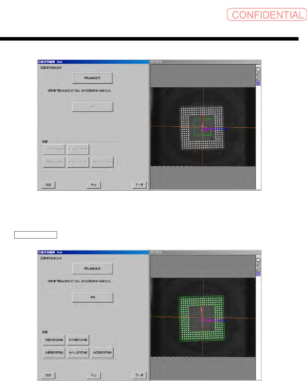 零件认识资料制作篇 零件认识资料制作篇 零件认识资料制作篇 零件认识资料制作篇 第 2 章 顺序 2-32 SI-F130/SI-F 209 图 1.5-10 影像存取 ( 影像存取 ) 后-锡球信 息输入时 点击 下一頁 ( 下一页 ) 钮,会出现 認 識資料自動生成 ( 认识资料自动生成 ) 画面 。 图 1.5-1 1 認識資料自 動生成 ( 认识资料 自动生成 ) -锡球信 息输入时
