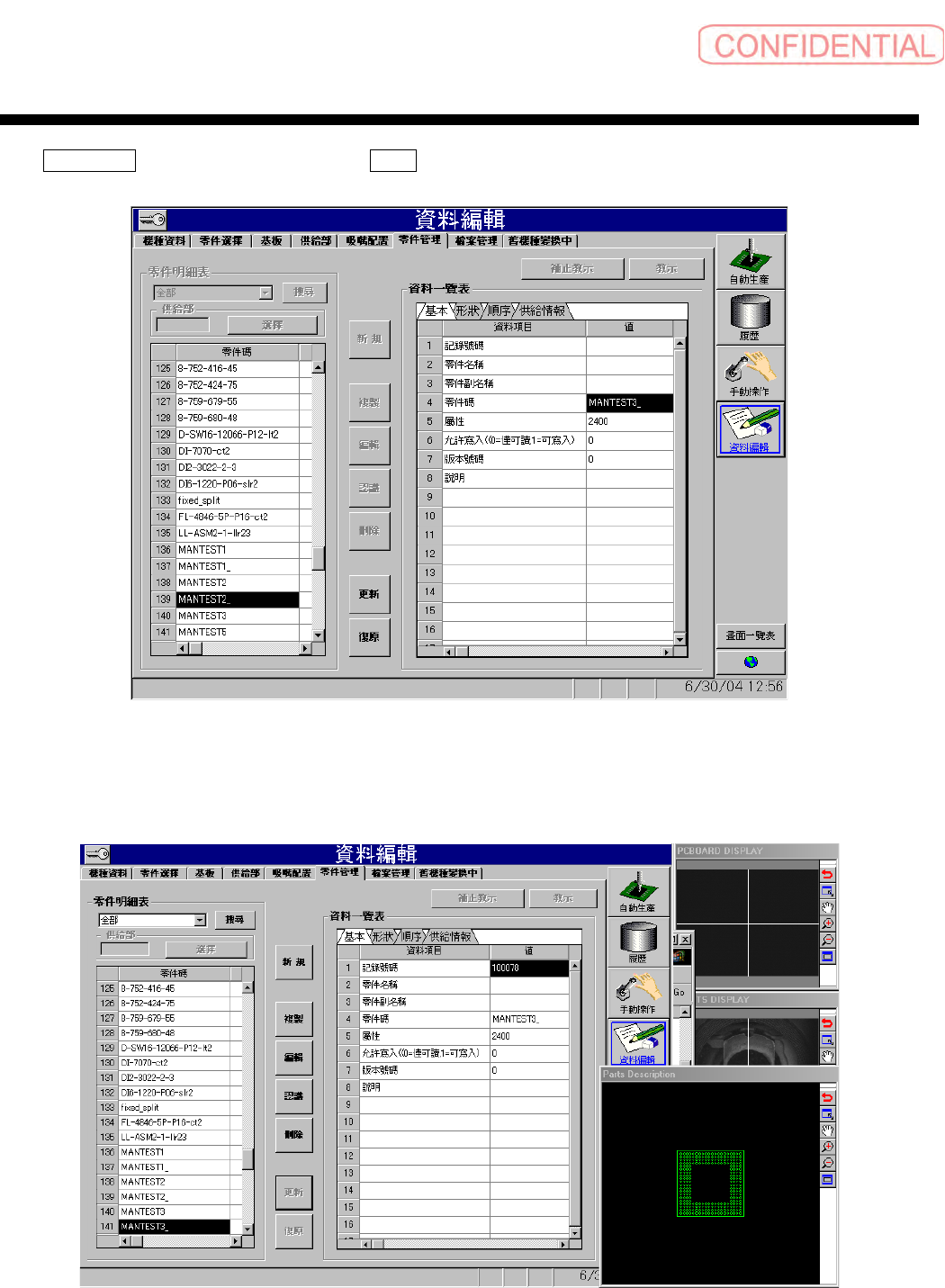 返回 零件管理 ( 零件管理 ) 画面,点击 更新 ( 更新 ) 钮,将数据写入零件管理表里。