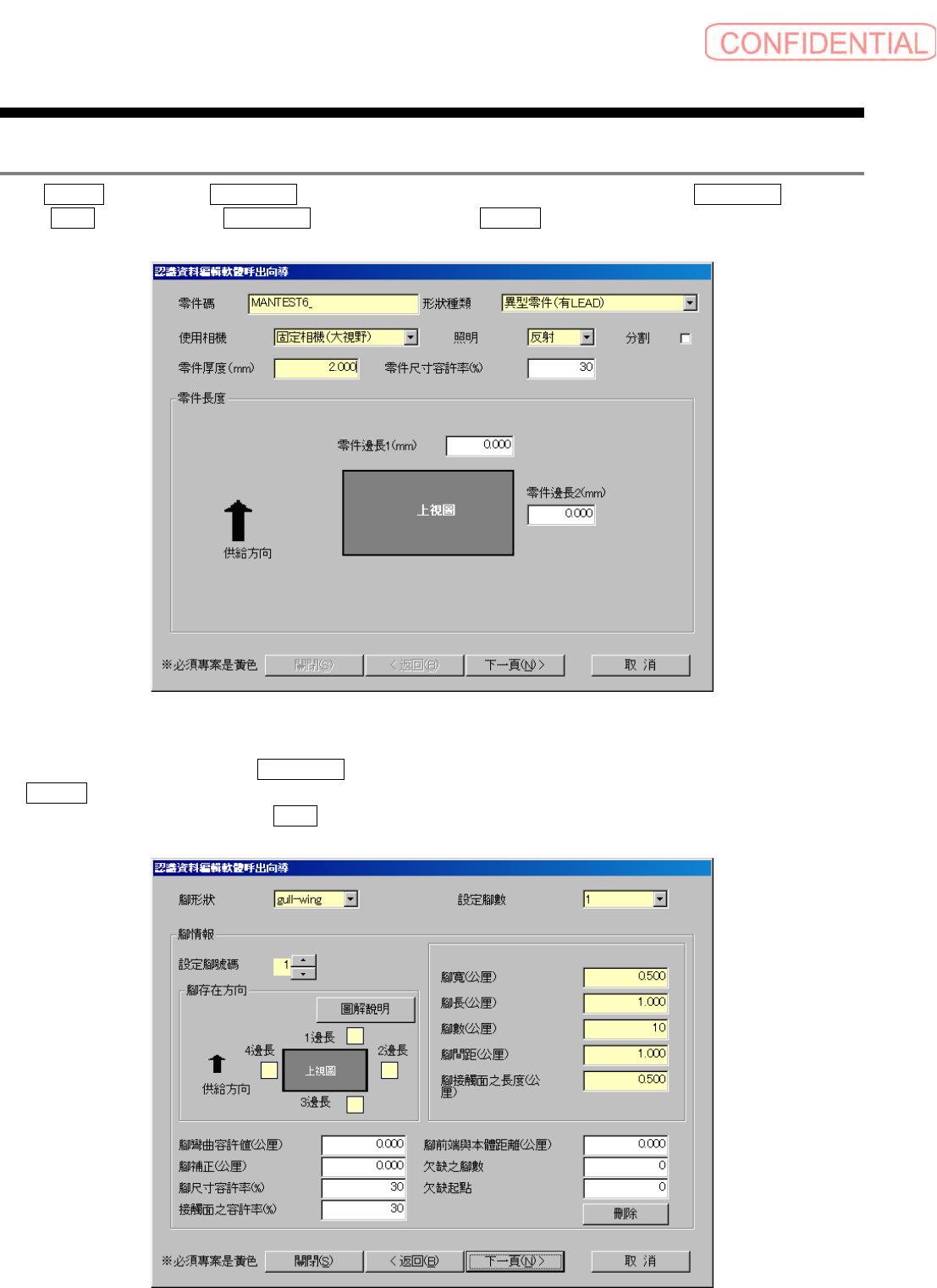 零件认识资料制作篇 零件认识资料制作篇 零件认识资料制作篇 零件认识资料制作篇 第 2 章 顺序 2-38 SI-F130/SI-F 209 1.6 异型 (有 脚)零件的数据制 作 异型 (有 脚)零件的数据制 作 异型 (有 脚)零件的数据制 作 异型 (有 脚)零件的数据制 作 输入 零件碼 ( 零件码 ) , 形狀種類 ( 形状种类 ) 选择异型零件 ( 有 LEAD) ,选择 使用相機 ( 使用相 机 ) 、 照明 ( 照明 …