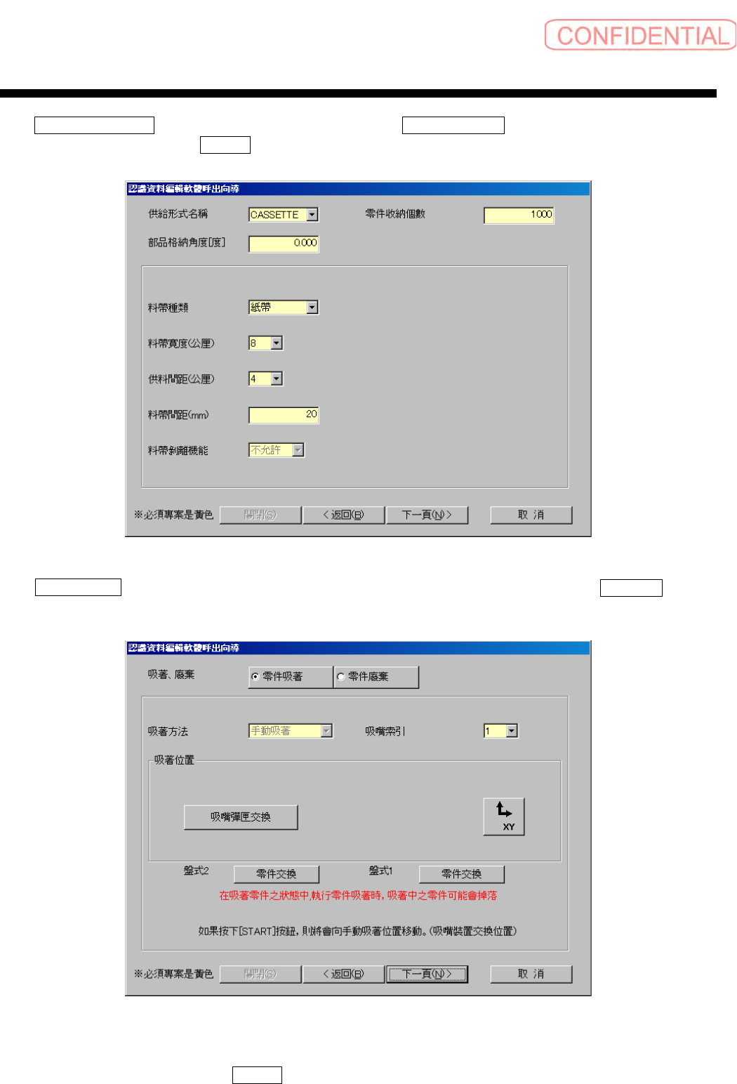 用手将零件吸着至吸嘴上,点击 下一頁 ( 下一页 )。