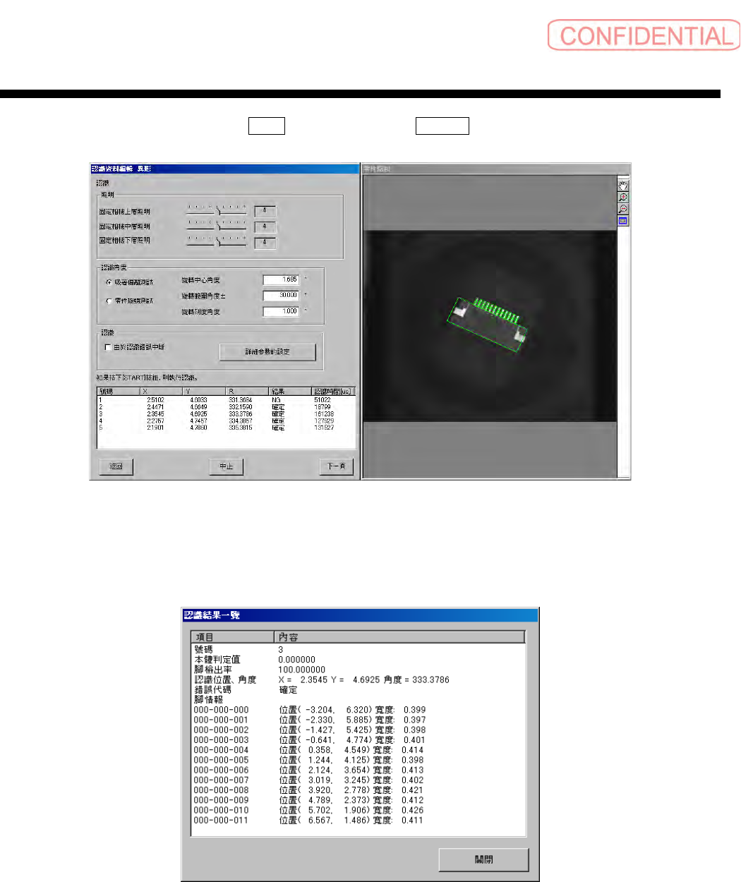 零件认识资料制作篇 零件认识资料制作篇 零件认识资料制作篇 零件认识资料制作篇 第 2 章 顺序 2-50 SI-F130/SI-F 209 若认识结果满意, 点击 下一 頁 ( 下一 页 ) 会出 现 資料存儲 ( 资料存储 ) 画面。点击 資料存儲 ( 资 料存储 ) 钮,储存资料后,用 結束 ( 结束 ) 钮返回 認識資料編輯軟體呼出向導 ( 认识资料编辑软件调 出向导 ) 画面。 图 1.6-21 資料存儲 ( 资料存储 ) 画…
