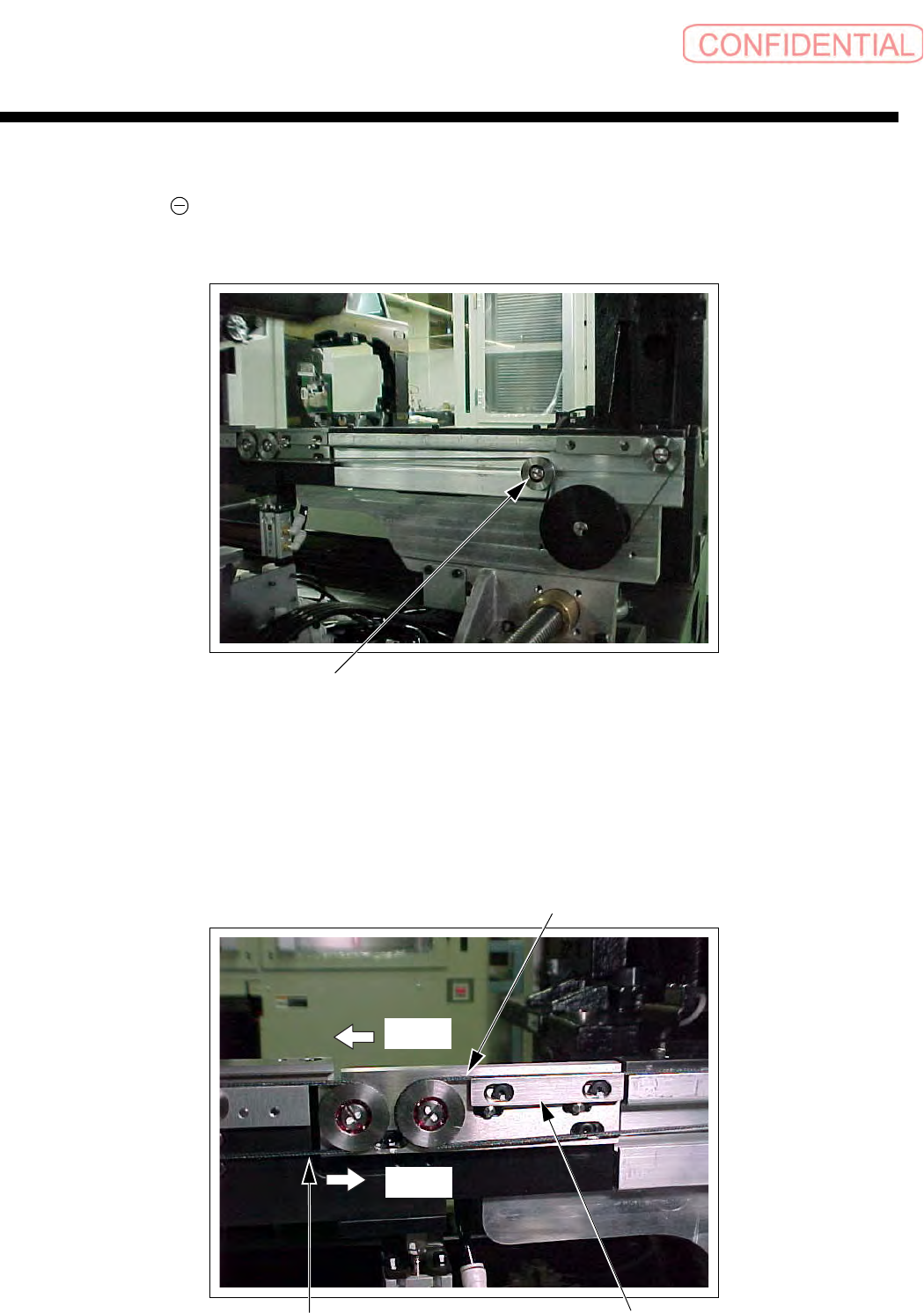 保养篇 2. 维修检查 2-74 SI-F130 (3) 2-8 页 No .2 的皮带交 换方法 轨道中使用的 8 根 皮带的中,对页 2-8 上显示的 No.2 皮带交换方 法进行了说明。 仅 No.2 皮带的交换方法 不同。 [ 作业 顺序 ] 1. 用六角扳手卸下 5 个装配螺丝,从轨道铸件上卸下铝框。 NO .2 皮带 马达 卸下铝框 驱动滑轮 轨道铸 件 固定螺钉 铝框