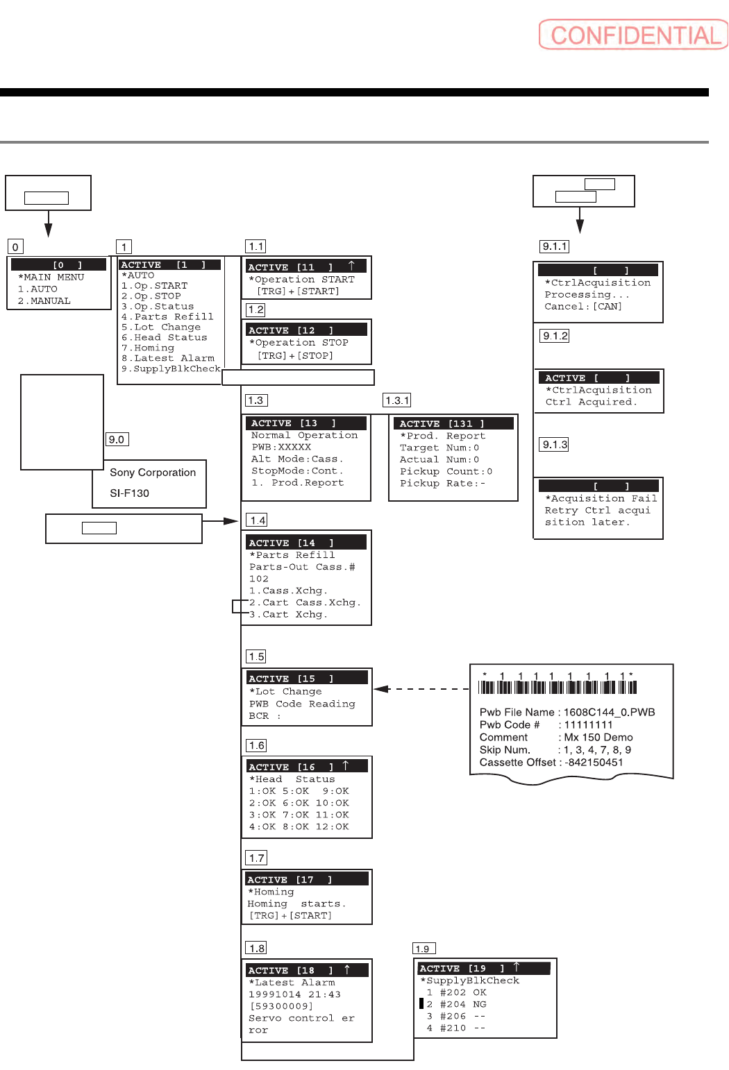 手动控制器篇 手动控制器篇 手动控制器篇 手动控制器篇 3. 说明信息 3-4 SI-F130 图 3-3 主画面 手动操作画面 轴操作画 面 XY 轴操作画面 XY 轴绝对座 标移动画面 XY 轴相对座 标移动画面 XY 轴微调动 作操作画面 吸嘴头 RN 轴操 作画面 吸嘴头 RN 轴绝 对座标移动画面 吸嘴头 RN 轴相 对座标移动画面 吸嘴头 RN 轴微 调动作操作画面 吸嘴头 H 轴微绝 对座标移动画面 吸嘴头 H 轴相对 座…