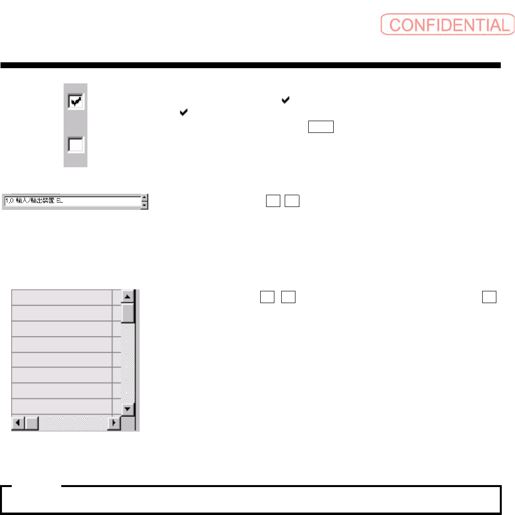 操作篇 操作篇 操作篇 操作篇 3. 操作画 面构成 SI-F130 3-3 在复选框,多项 功能中选择需要的功能,将 鼠标置于此功能上,点 击左键,进行选 择。带 标志的框被选中。 取消选择是将鼠标置于 带 标志的框上,点击 左键。此复选框选择操作在 必要的情况下, 本说明书中仅记 述为 “点击 ○○ 复选框” 。 将鼠标置于微调 控件 ▲ ▼ 中任一个,点击左键, 列表框可以滚动显 示列表框。显示 的项目被选择。这个列表框 的操作在…