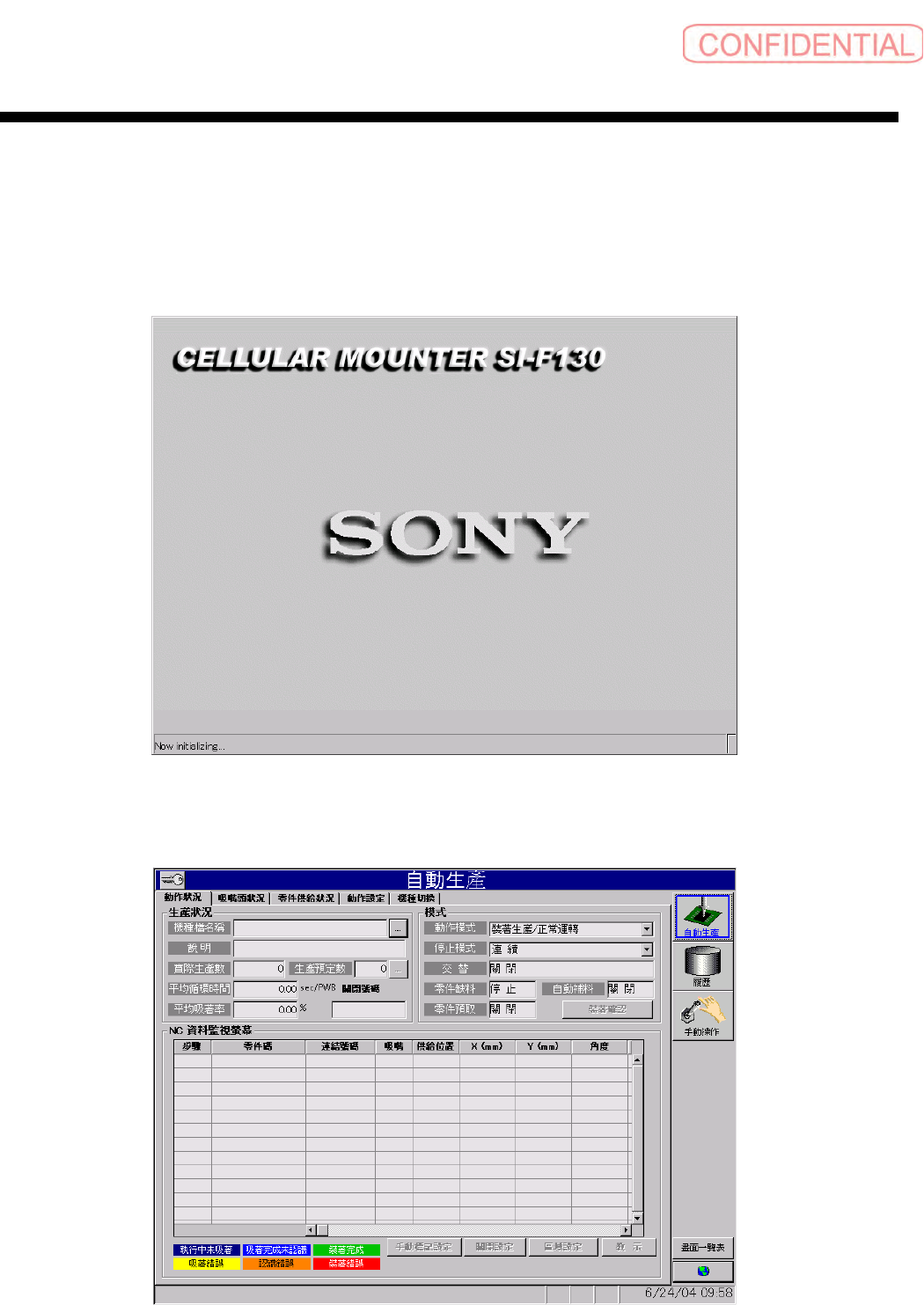 操作篇 操作篇 操作篇 操作篇 4. 自动生产 4-2 SI-F130 4.1 生产准备 生产准备 生产准备 生产准备 进入自动生产,需 要以下准备。 4.1.1 装置的起动 装置的起动 装置的起动 装置的起动 接入电源,起动装 置。 4.1.2 机种文件的确认 机种文件的确认 机种文件的确认 机种文件的确认 确认生产机种文件 ,若未设定,则下载。 4.1.3 供料器的确认 供料器的确认 供料器的确认 供料器的确认 确认生产中必要零 件…
