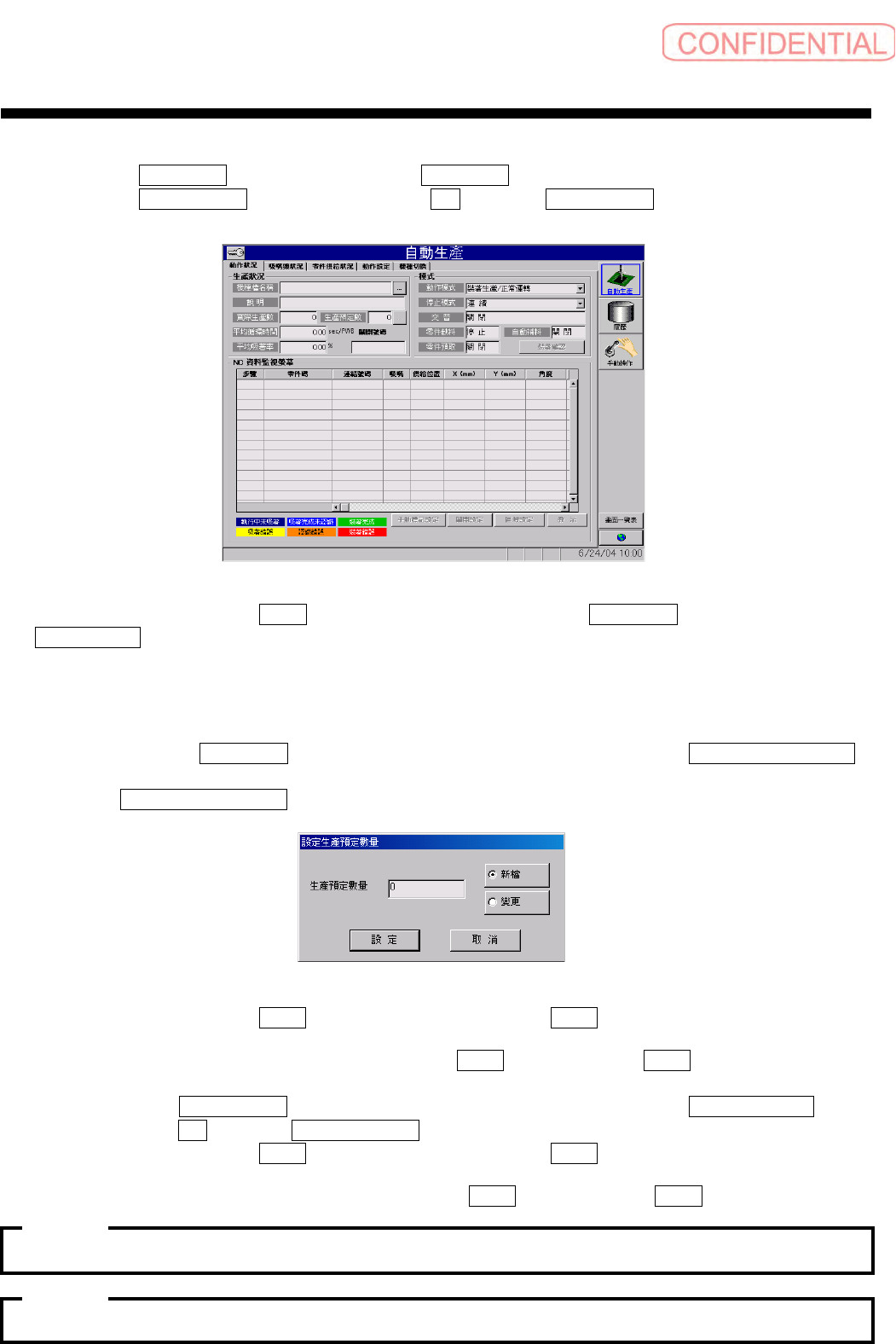 設定機種 ( 设定机种 ) 框里显示生产机种文件后,点击 設定生產預定數量
