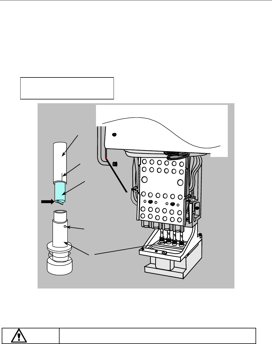 第 3 章 保养 Rev03 3-5 3-2-4-2 FMLA 贴片头(仅限于 KE-2060) 1. 松开“Θ电动机轴①”的“固定螺丝②” ,拔出“吸嘴外轴 IC③” 。 2. 检查过滤器④是否有脏污。 3. 如果有脏污等,从“吸嘴外轴 IC③”中更换“过滤器④” 。 4. 将“ 吸嘴外轴 IC③”插入“校准轴①”中,用“固定螺丝②” 固定牢固。此时,请把“固定 螺丝②”的位置对准“划线⑤”的延长线。 过滤器④ 型号:E3052729…