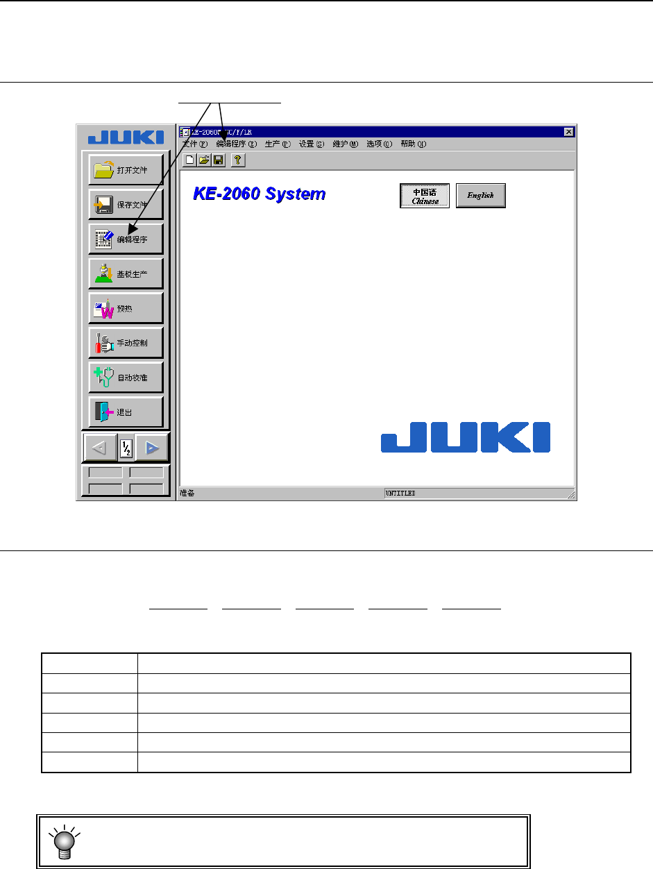 第 4 章 生产程序制作 Rev03 4-4 4-2-2 设置显示语言 通过选项菜单选择“设置显示语言”后,将出现下图所示对话框。 * 当用户组级别在管理者以上时,这一功能可执行。 各按钮的功能 ① “显示/隐藏”按钮: 按下这一按钮时,桌面画面上将显示该当的语言切换按钮。 (下图) ② “选择语言”按钮∶用于切换所显示的语言。 ③ “显示上述语言”∶这一按钮所按下的语言被使用。 选择 “OK” , 所选择的语言的语言切换按钮将出现在桌…