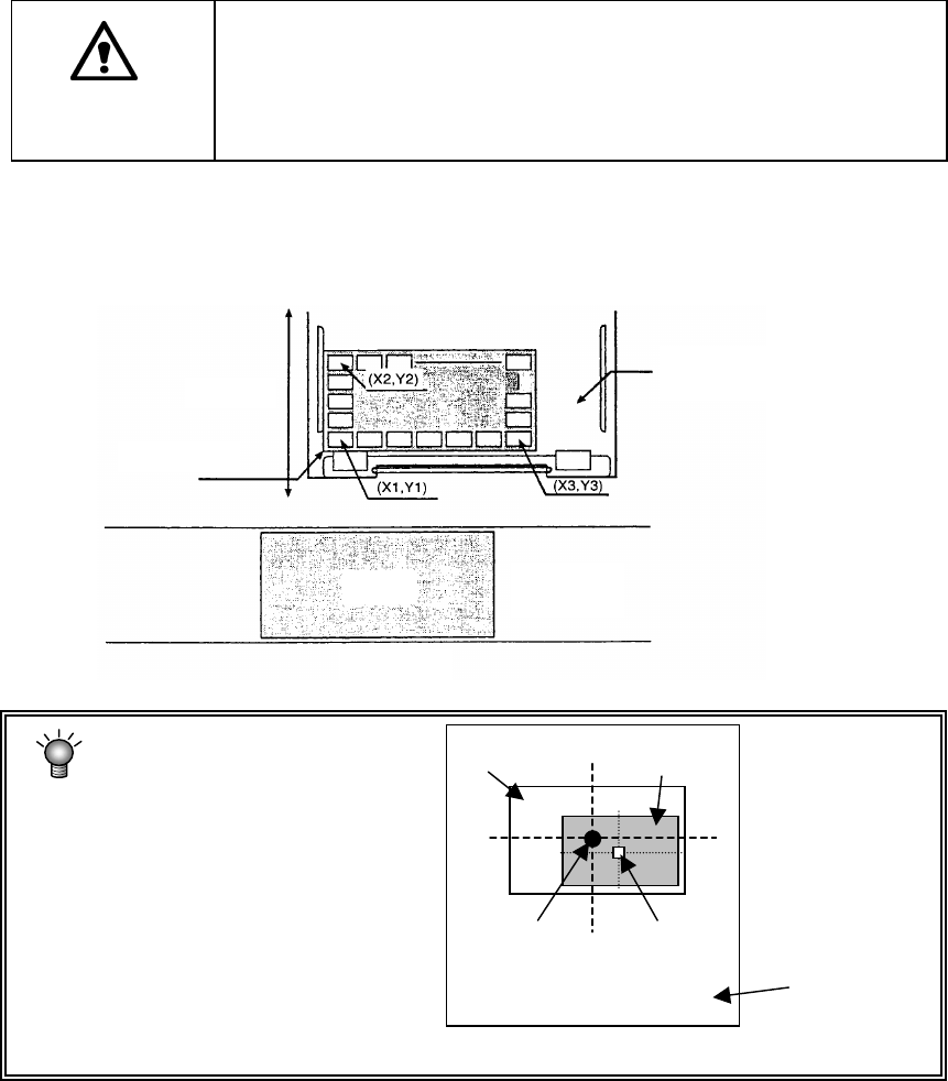 到各元件的位置进行吸取,因此,必须进行3处(下图X1Y1、X2Y2、X3Y3)示教。另外,当为MT