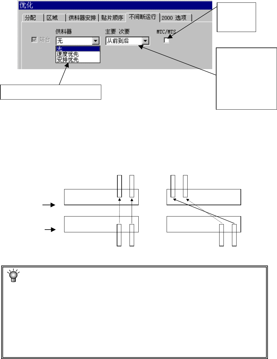 面。操作人员可在机器从后面吸取元件时,补充前面的元件。在完成前面的元件