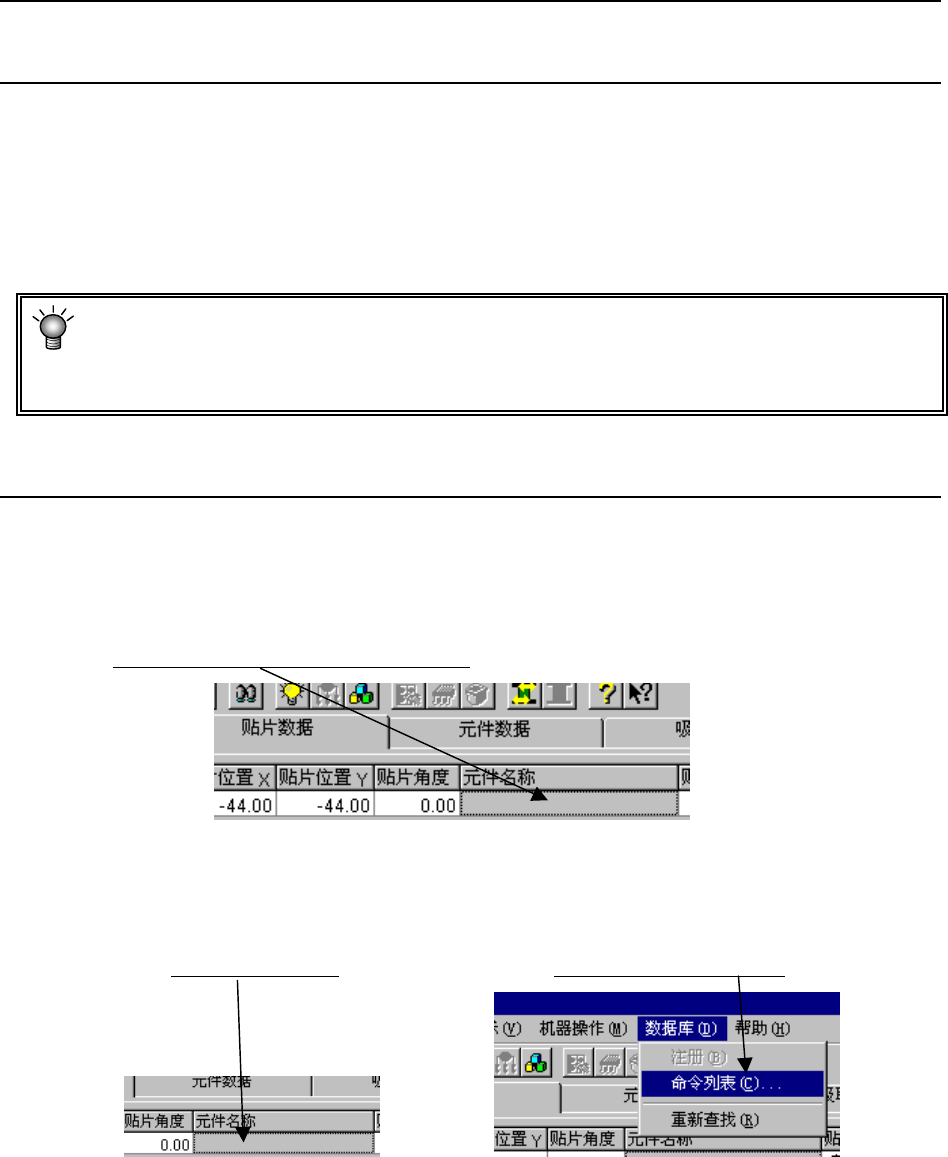 元件名已被注册到数据库时,只要在“贴片数据”中输入元件名,数据库的内容即被注册到