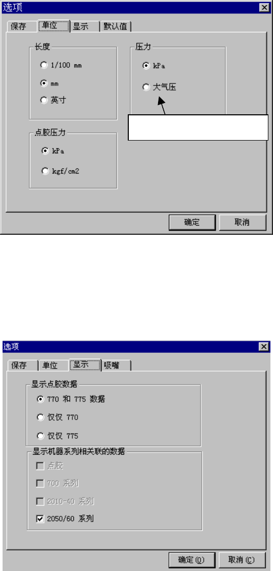 指定长度和压力的单位。在KE-2050/2060中没有使用“点胶压力”。