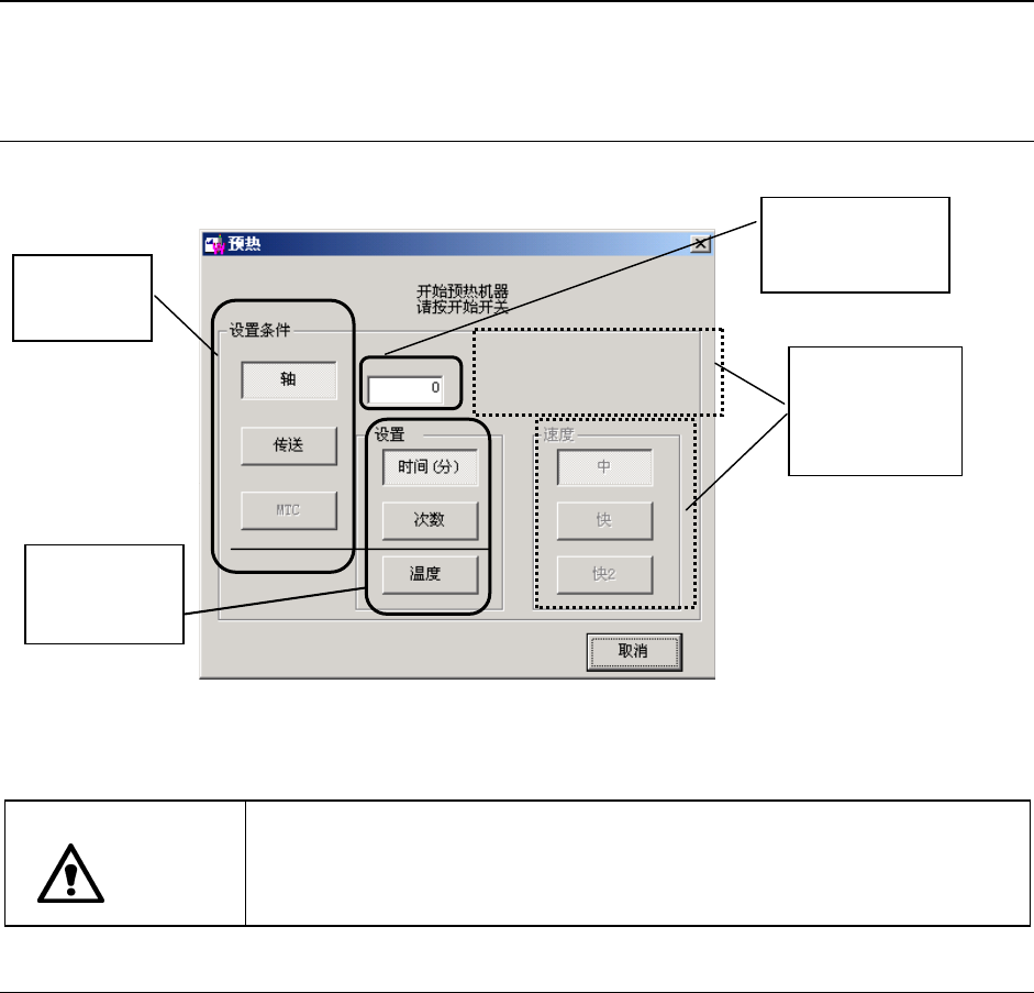 预热对象,从轴、传送、MTC 中选一(初始设置为“轴”) 选择一项。