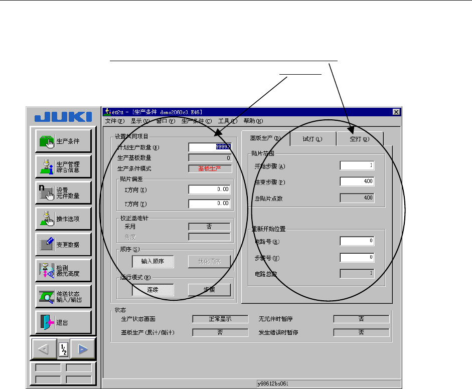 在个别设定项目中所选择的生产条件模式,将以基板生产、试打、空打的顺序进行显示。