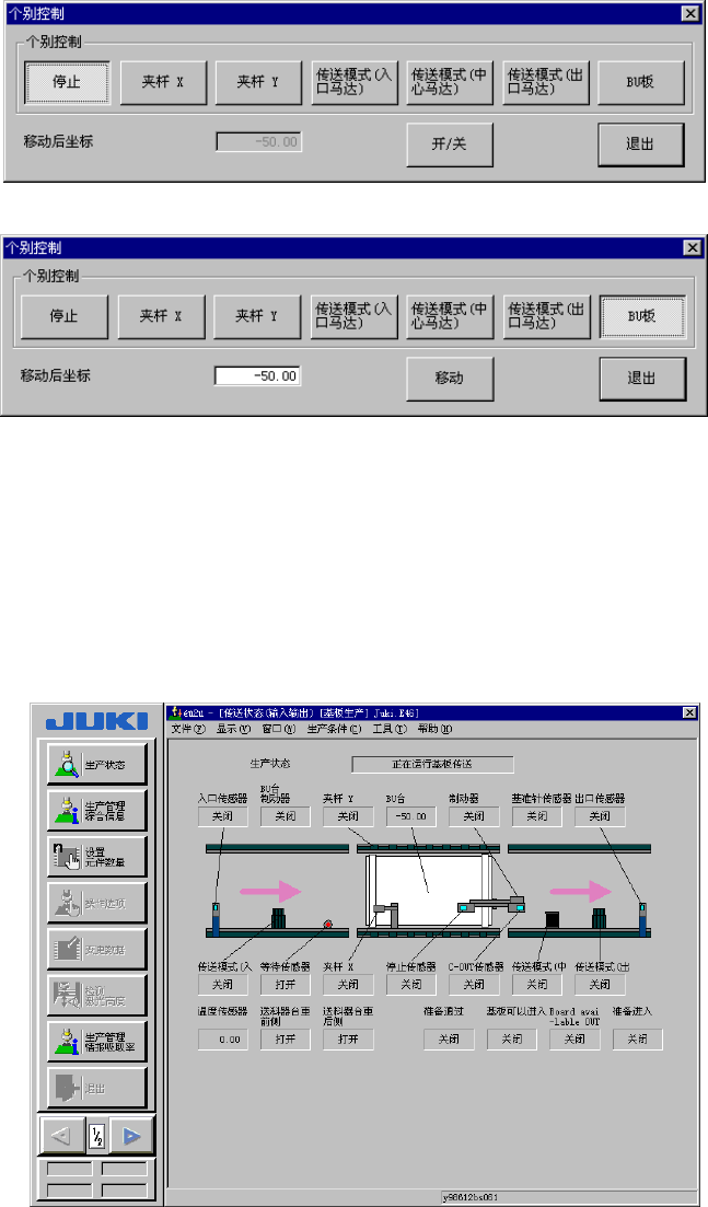 此外,在下图的生产空运行画面中,可以执行基板搬入/搬出等传送运行。