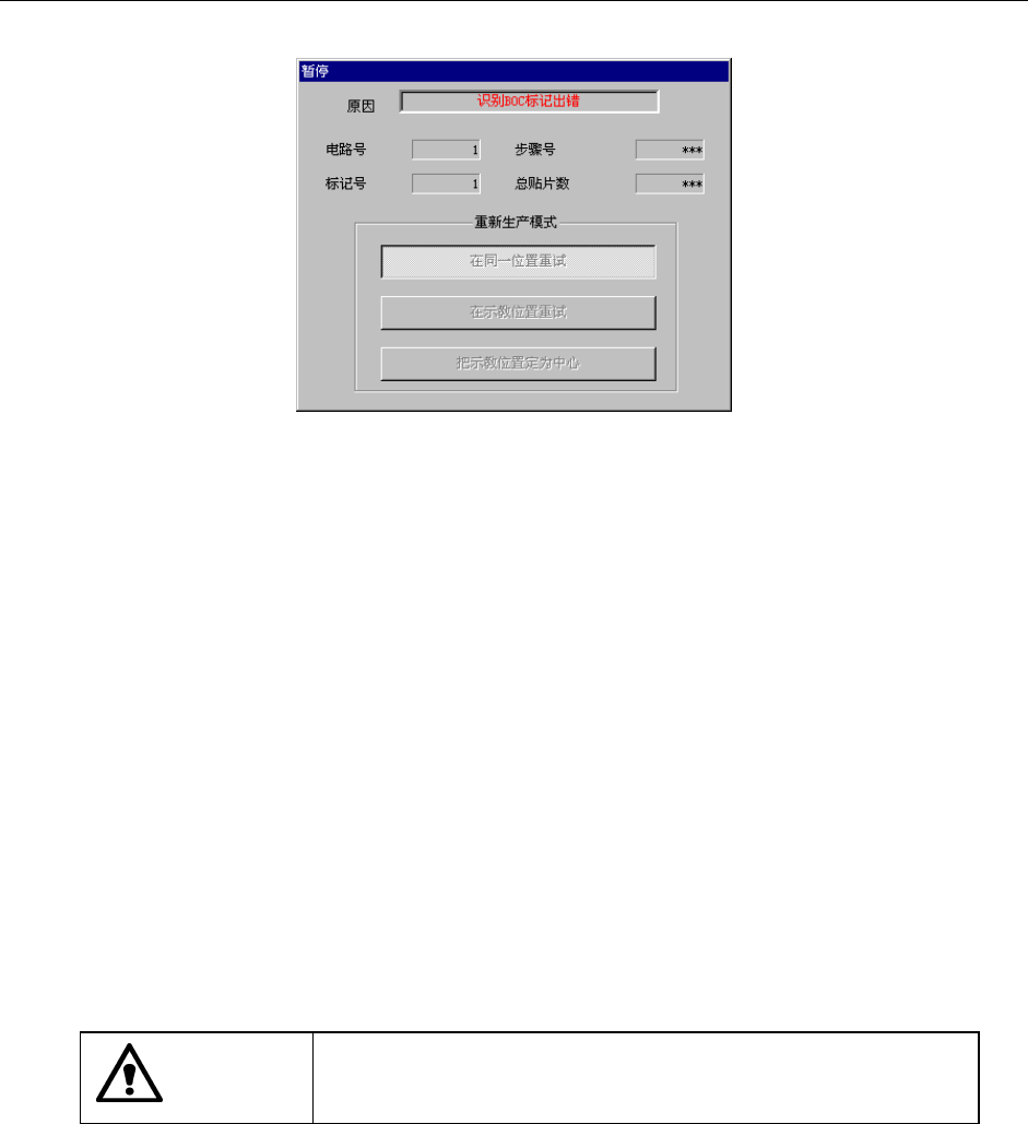 在BOC标记、区域基准标记的识别中发生识别错误,则显示如下的画面,并进入暂停状态。