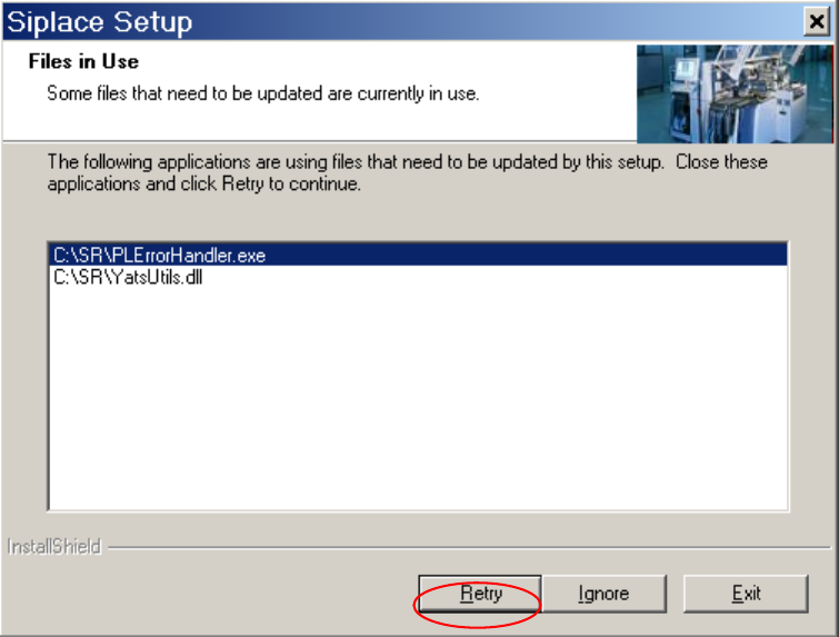 Installationsanleitung Stationssoftw are Version 601.03 SP1 Ausgabe 06/2006 Abb. 4-12: Geöffnete Anwendungen → Beenden Sie die hier aufgeführten Anwendungen und klicken Sie anschließend auf die Schaltfläche Retry . Das I…