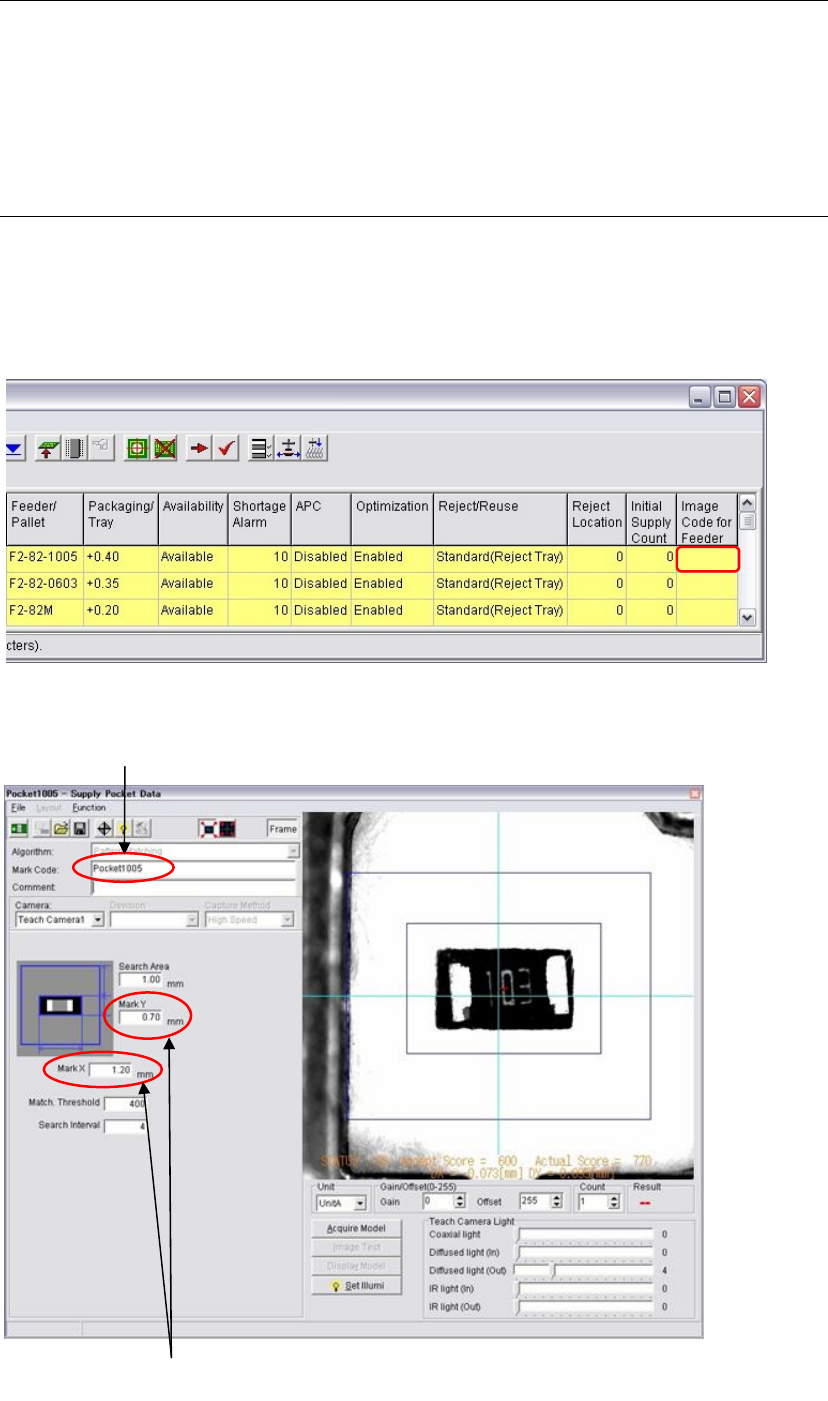 ⑤ Enter the created image data code in the [Image Code for Feeder Support] cell.