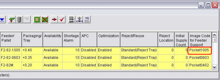 Select [Pocket 0402], [Pocket 0603], or [Pocket 1005] for the feeder support function.