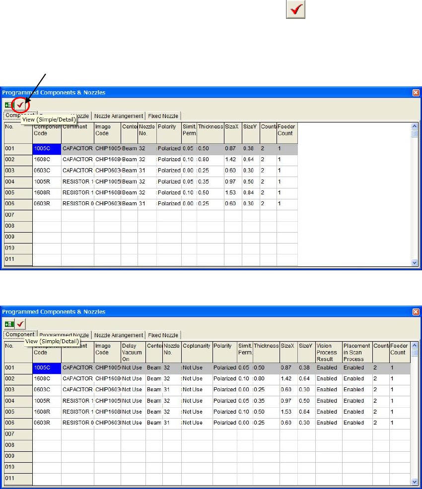 [Programmed Components & Nozzles] window. Always the simple view appears the first.