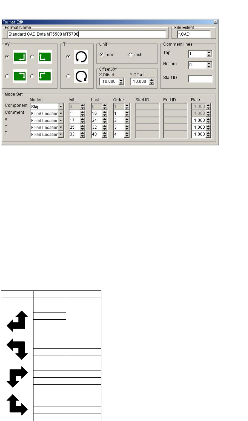arrow.) If the X,Y-axis direction of CAD data and destination data differ, +/- sign of CAD data