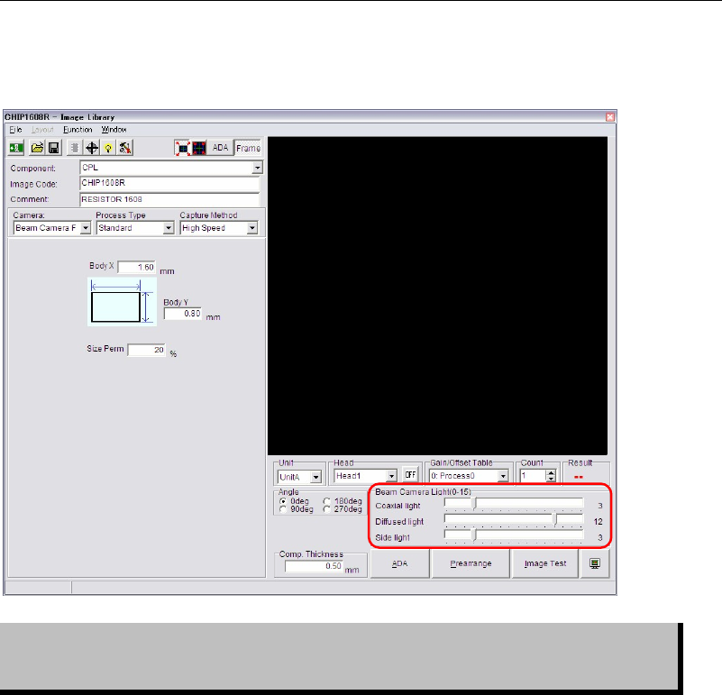 Illumination settings for component recognition cameras can be made in Image Library edit