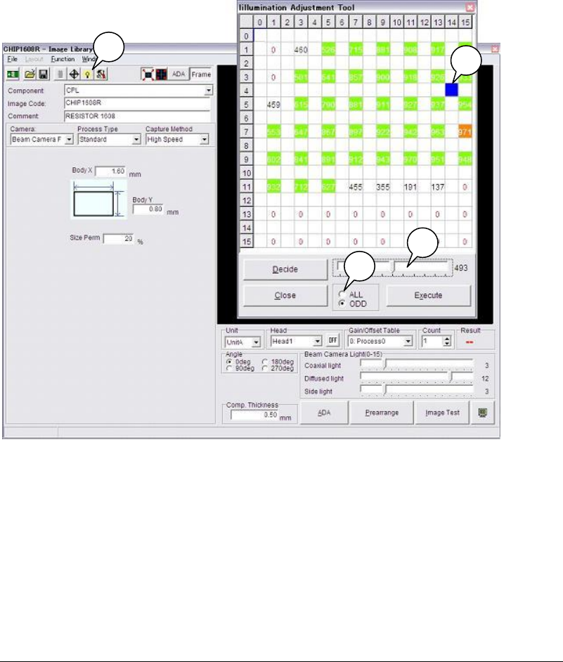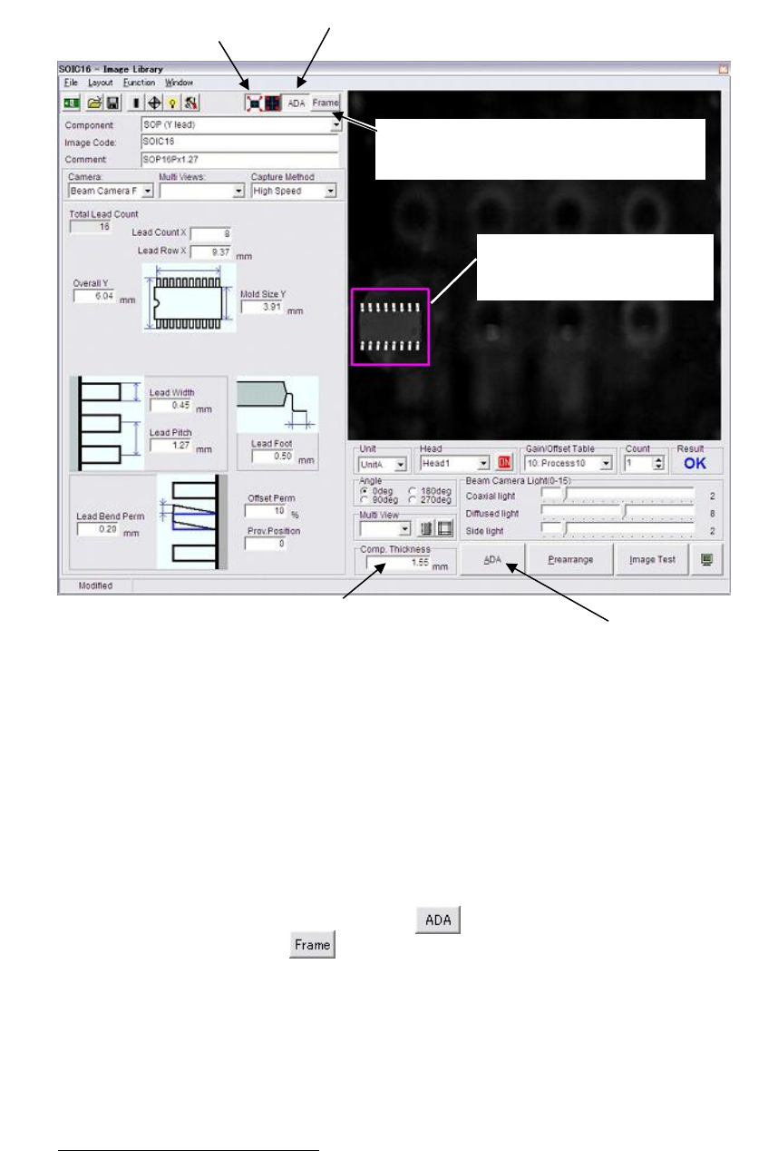 Chapter 5 Libraries 5-30 How To Perform ADA Action: ADA is performed via the Image Library edit wind ow. ① In the Image Library edit window, type the im age code and comment, and select the camera. ② Type the component…