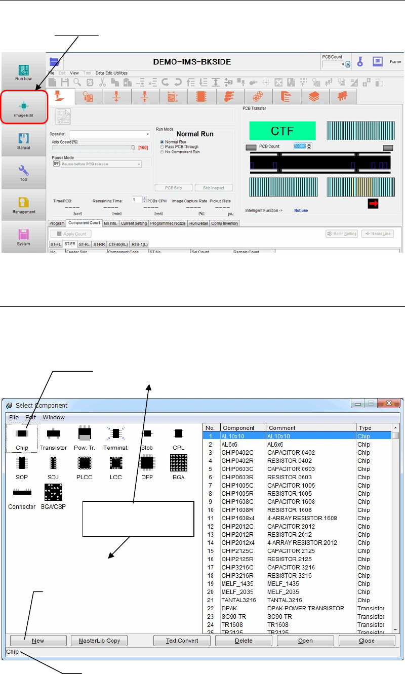 Open: Select a component and click <Open> button to open the Image