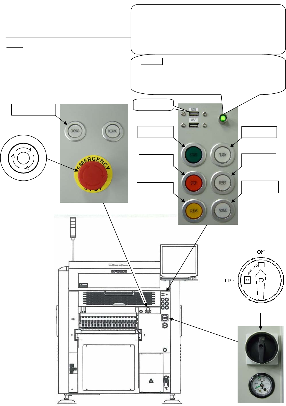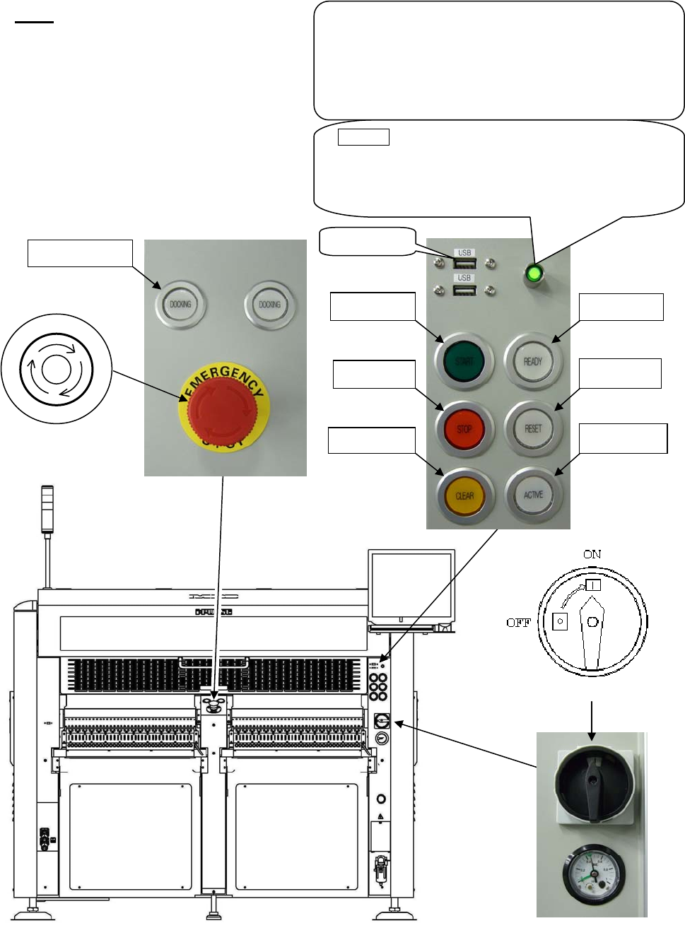 Chapter 1 General 1-3 Rear View Note: Configuration of the control switches varies depending on each machine configuration. 3. READY 5. START 4. RESET 6. STOP 8. ACTIVE 7. CLEAR 2. Emergency Stop switch P O T S E Y C N E…