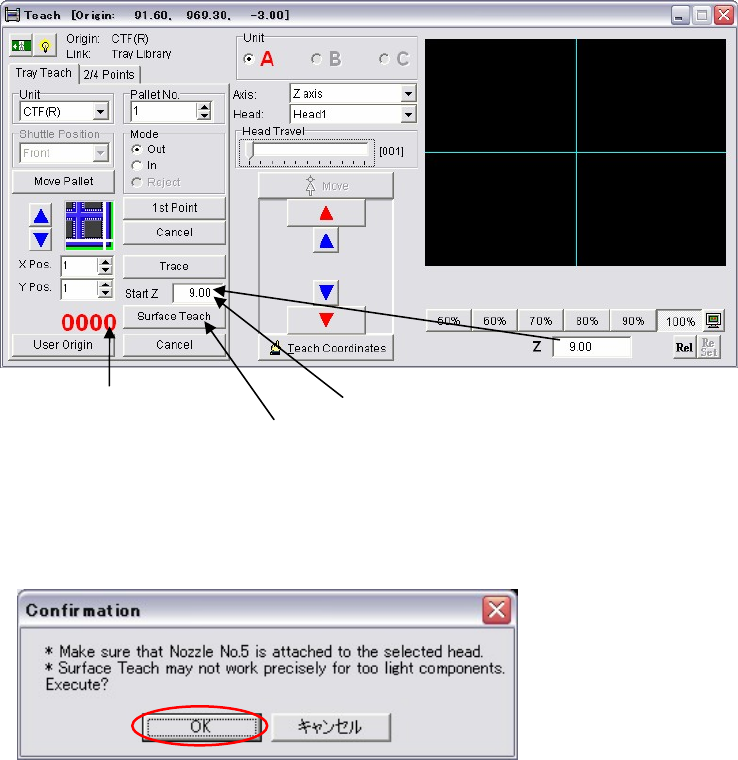 Before performing the surface teach, be sure that a component exists in the tray pocket where