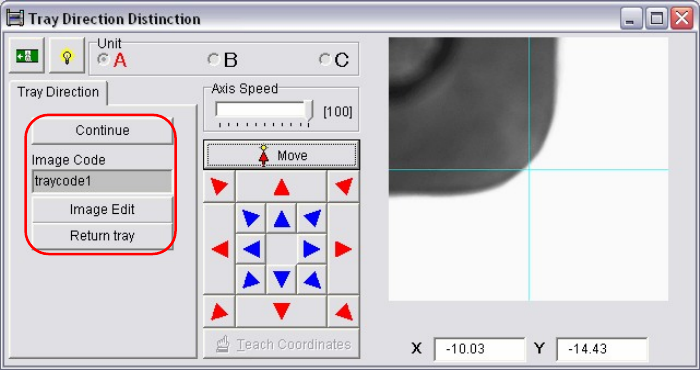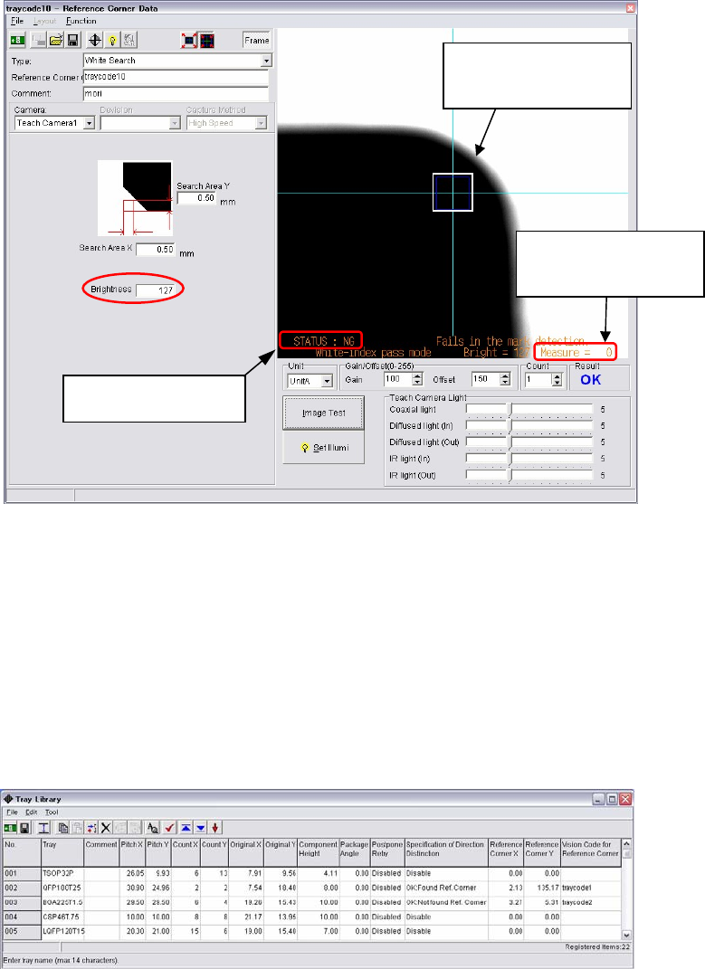 ③ When the teach camera moves to the tray corner, the following window appears. Select