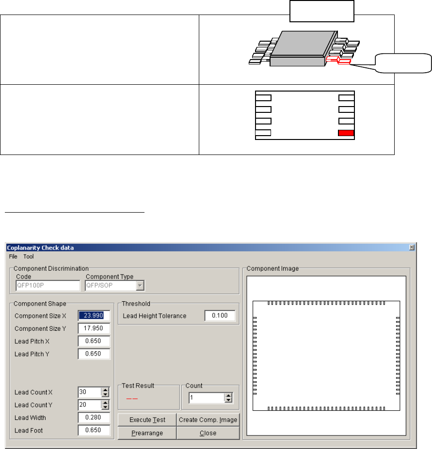 Chapter 6 Coplanarity Checker 6-8 ■ Threshold Item Description Lead Height Tolerance Enter a Threshold to evaluate whether the component is good or bad. Component coplanarity is judged in comparison with Assumed Plane 1 …
