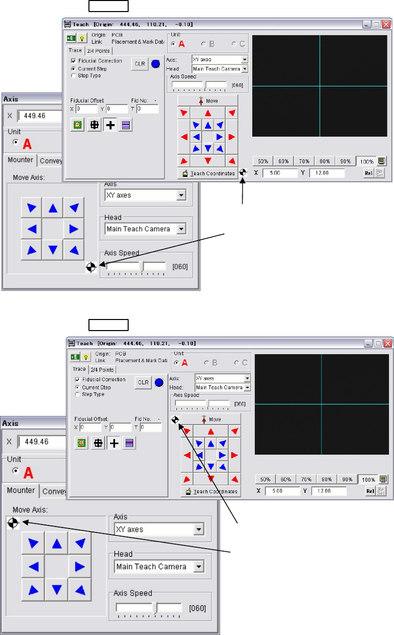 Chapter 1 General 1-9 Note: Moving directions of the arrow keys reverse in the [Axis], [Teach], [Load Board], and [Conveyor Width] windows. The displayed image in the Teach window is al so reversed from top to down and r…