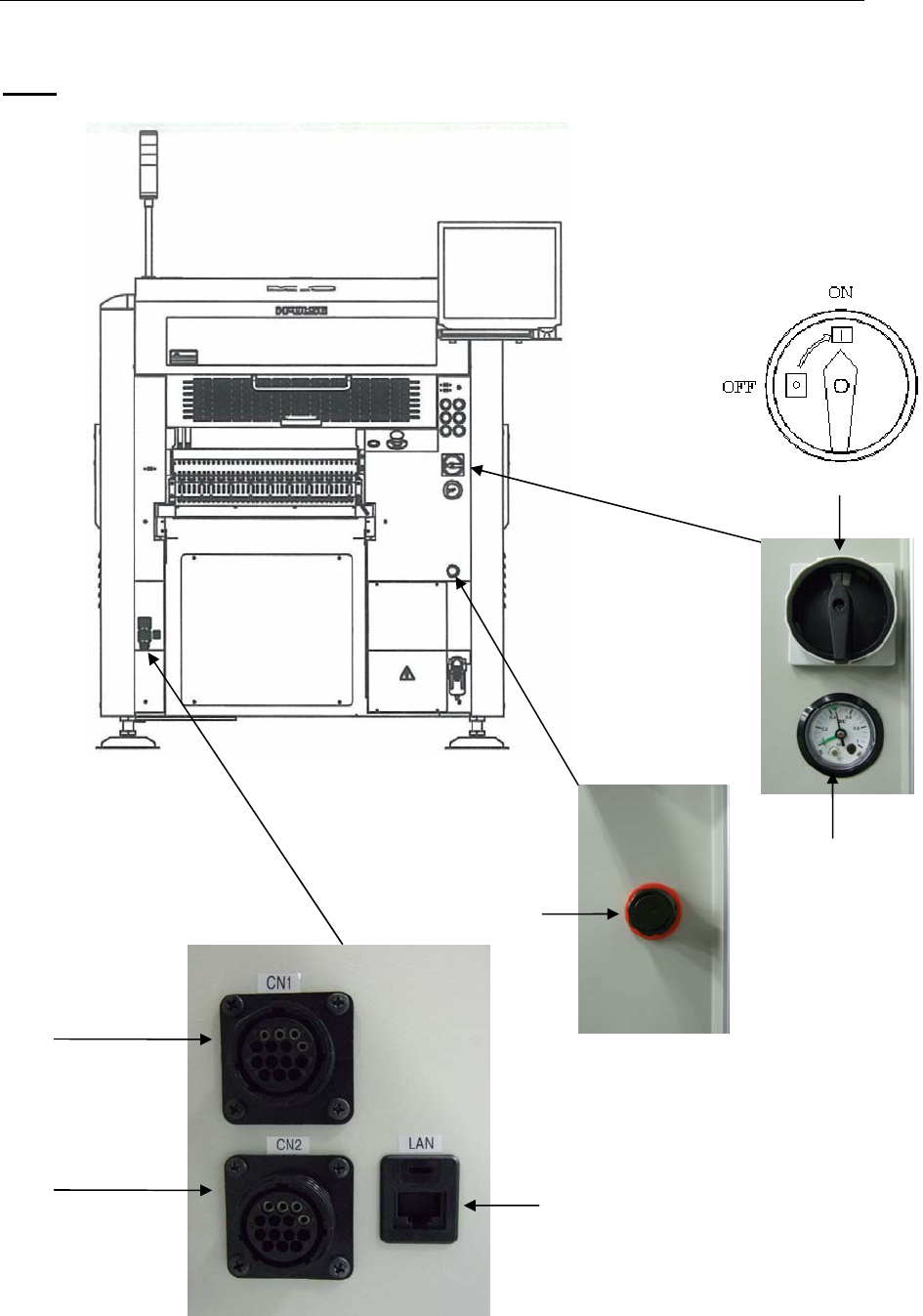 switch locates only on the front side. Turn the mounter of/off from the front side.