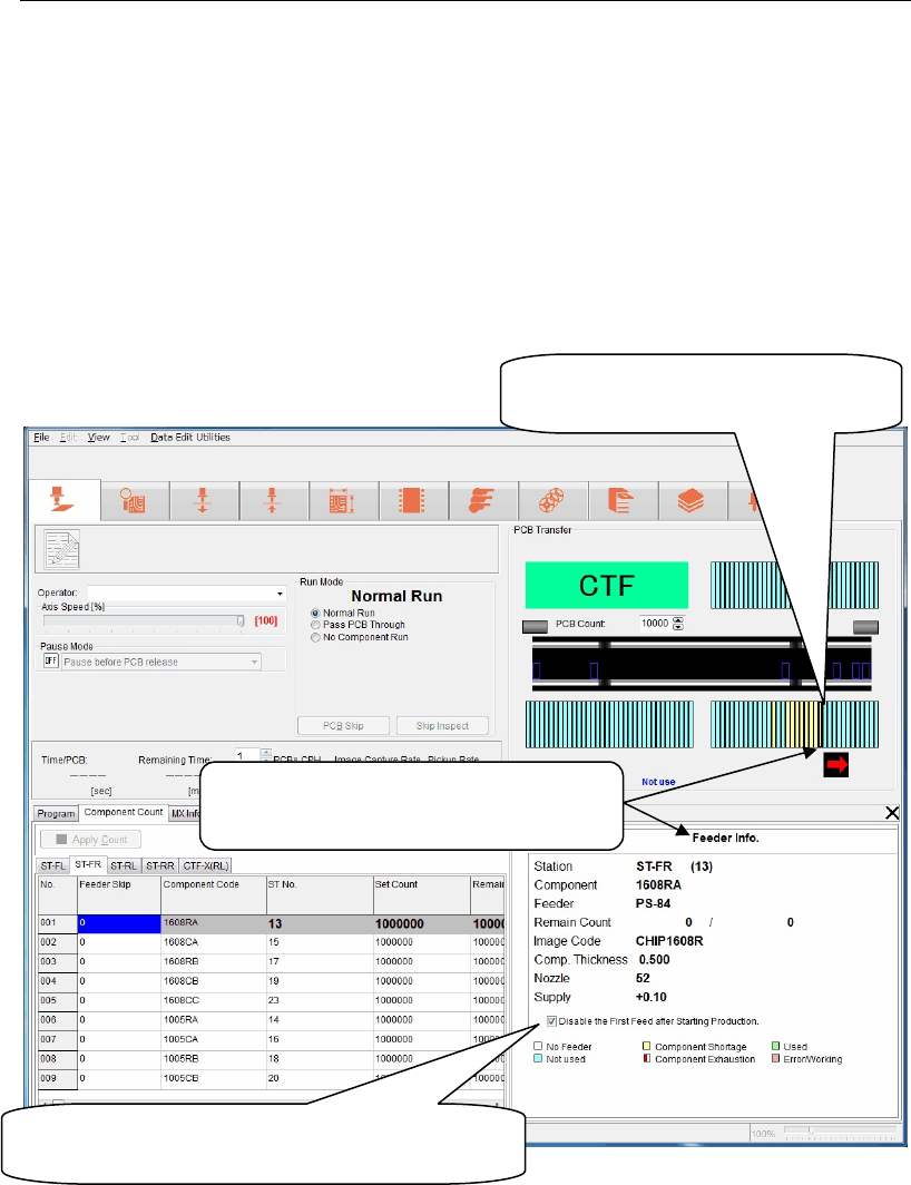Additionally, the feeder status, such as component shortage is also displayed in other color.