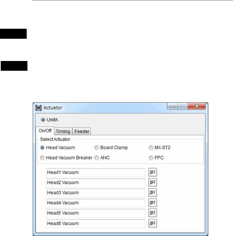 ② Click <OFF> button for the desired actuator. <OFF> button turns to <ON> and the